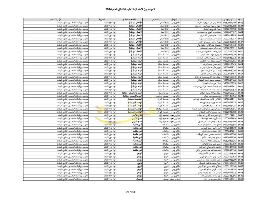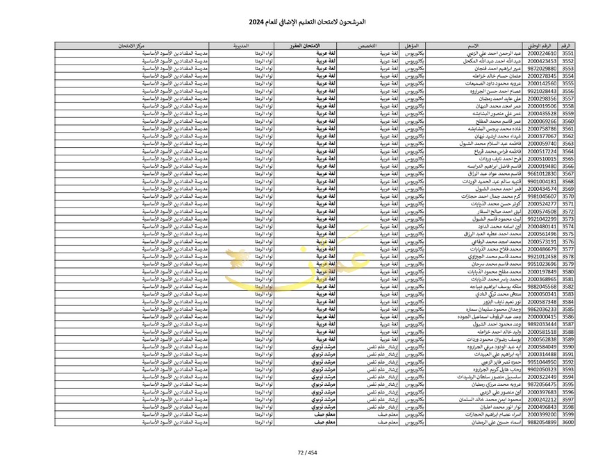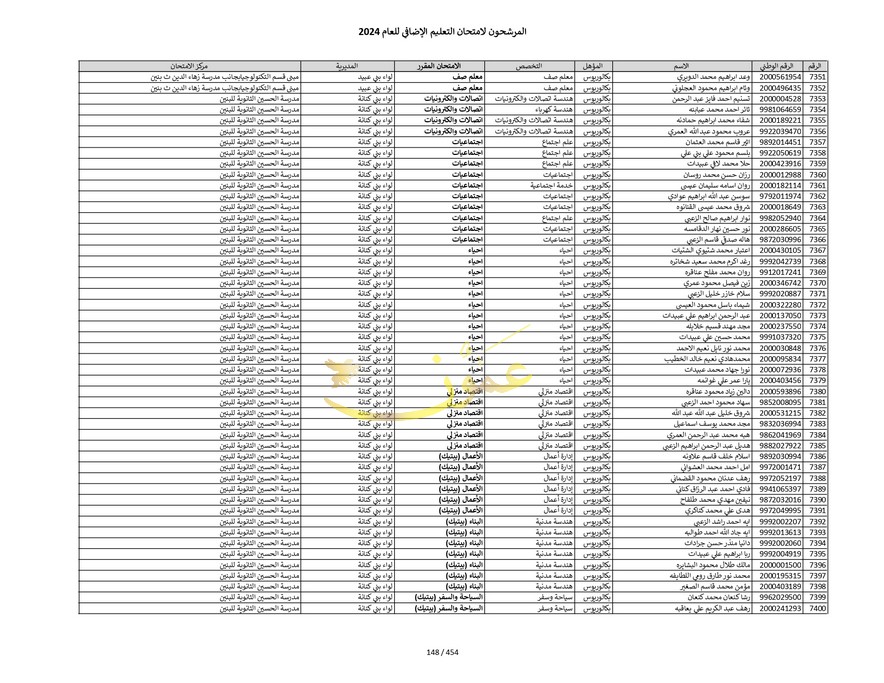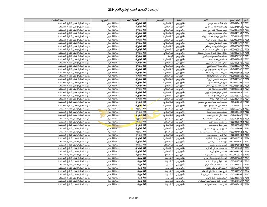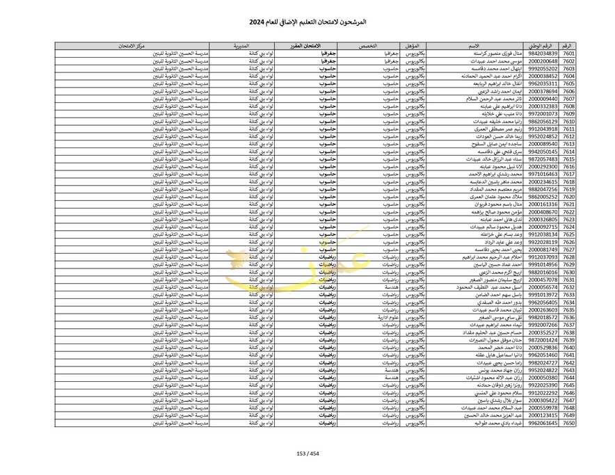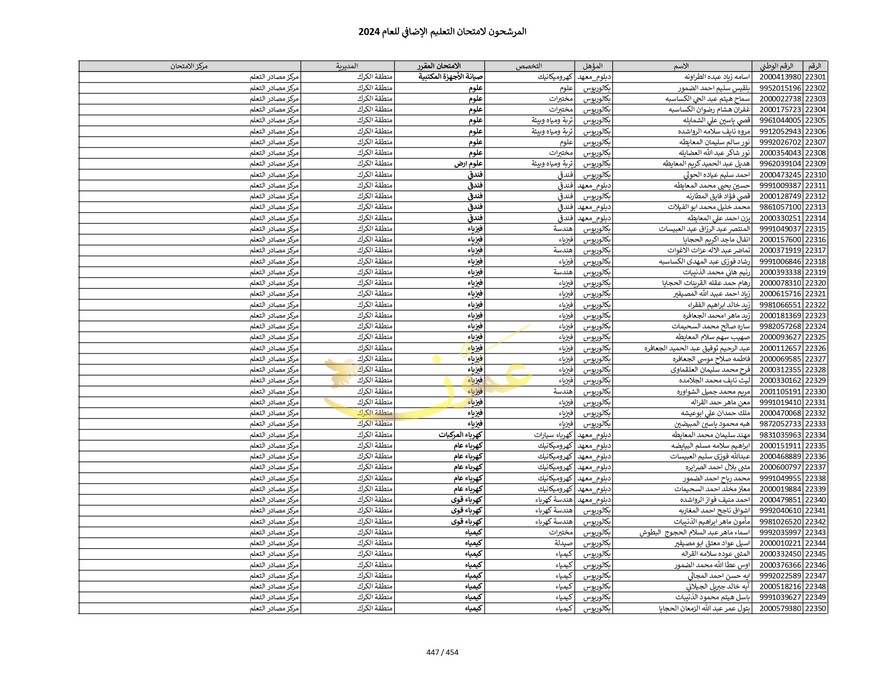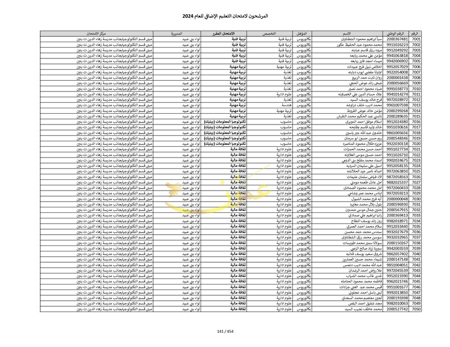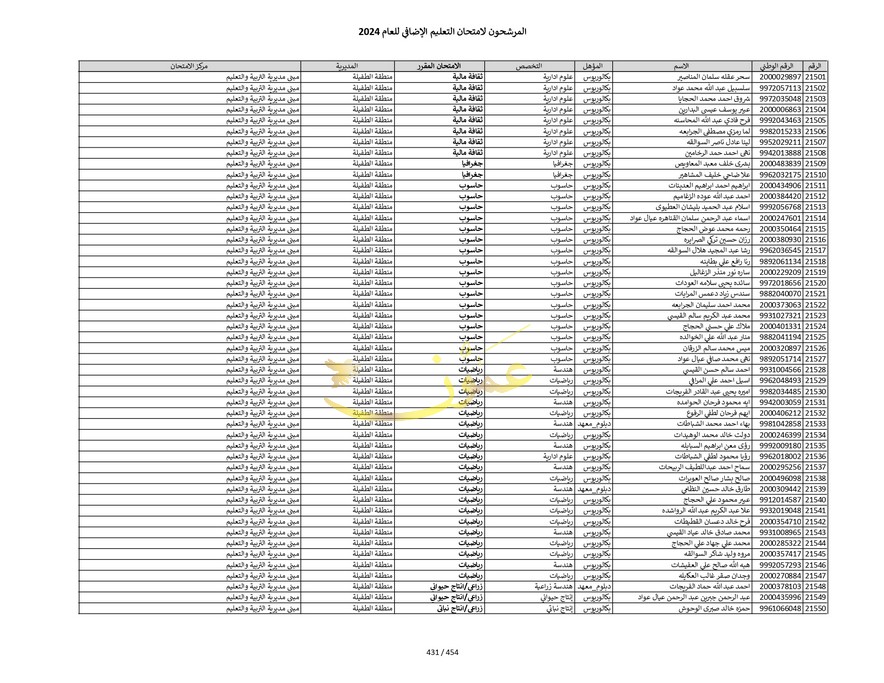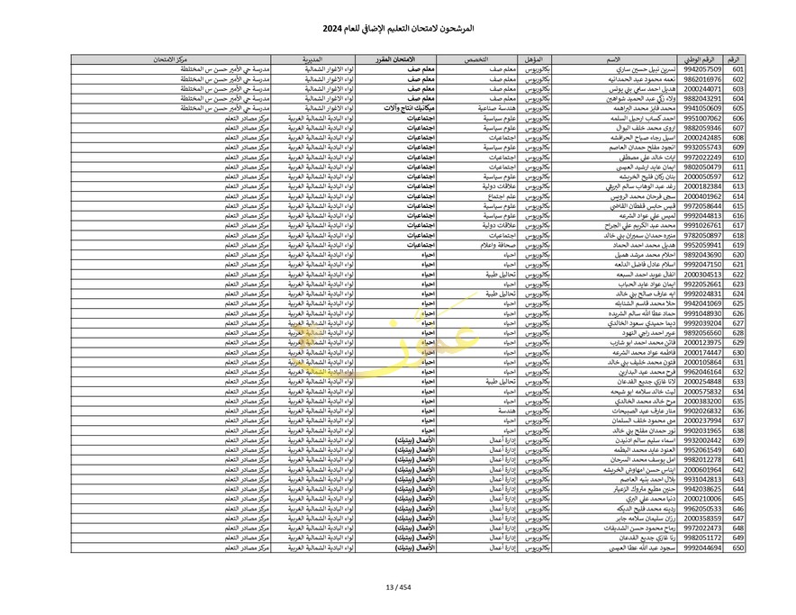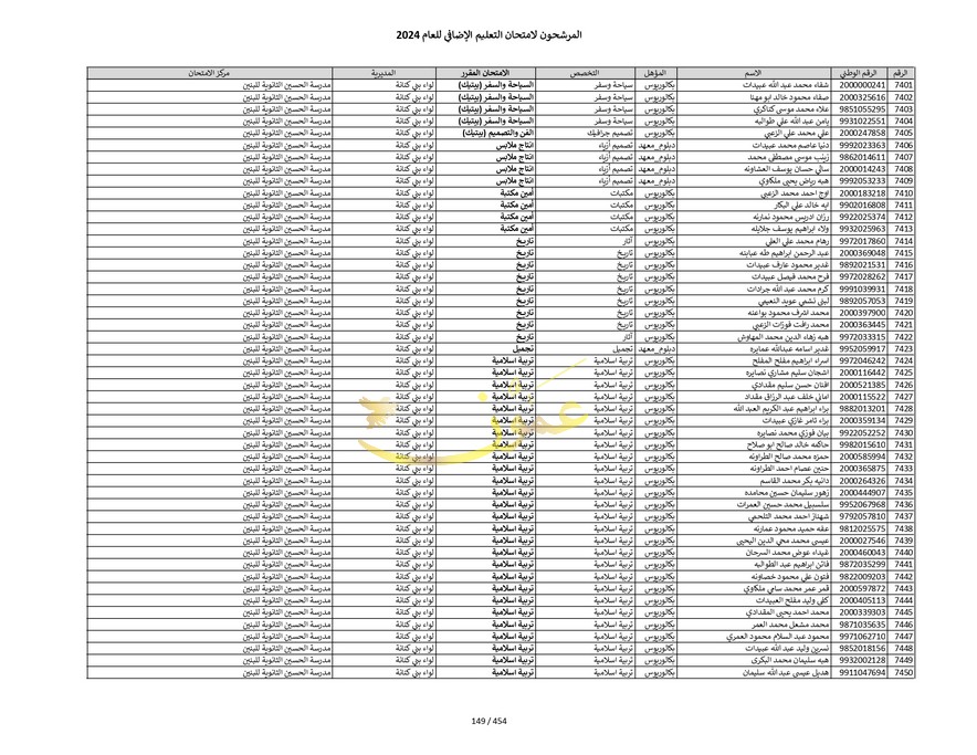 آلاف المدعوين لامتحان التعليم الإضافي (أسماء)