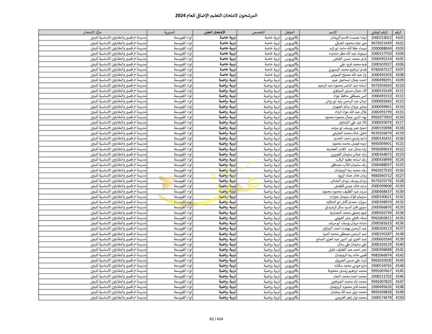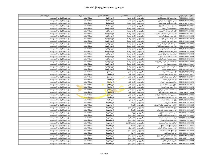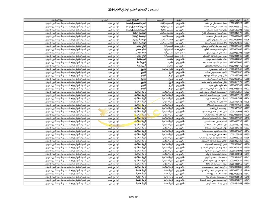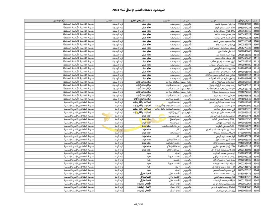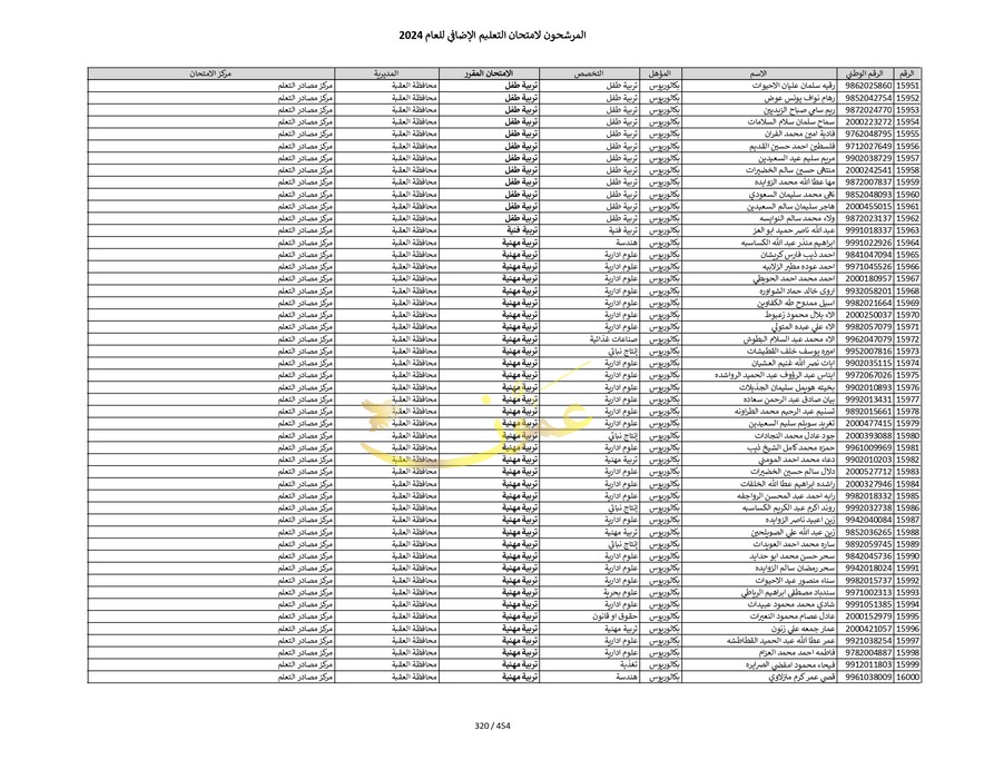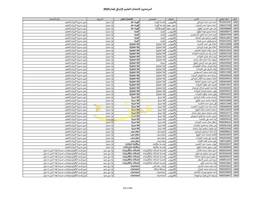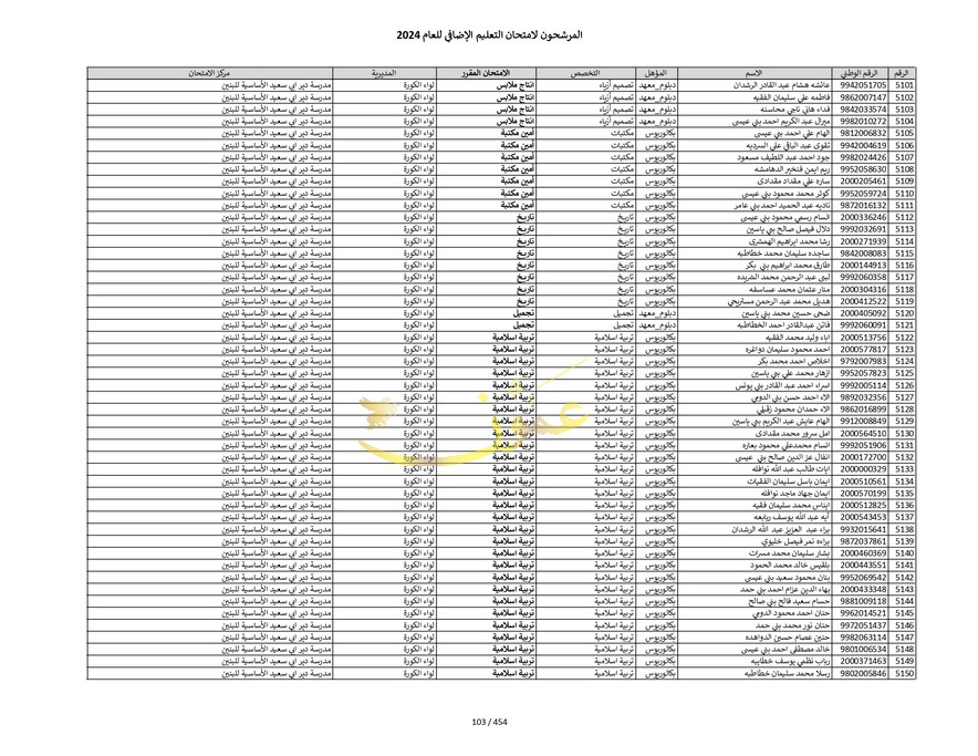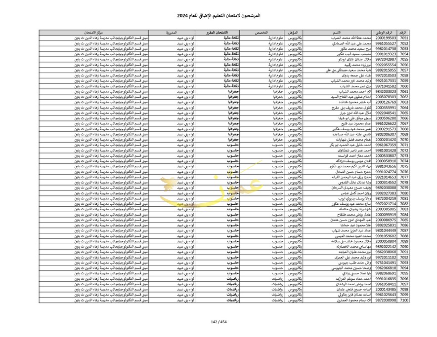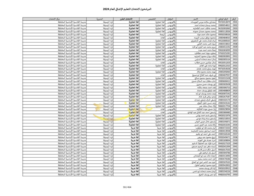 آلاف المدعوين لامتحان التعليم الإضافي (أسماء)
