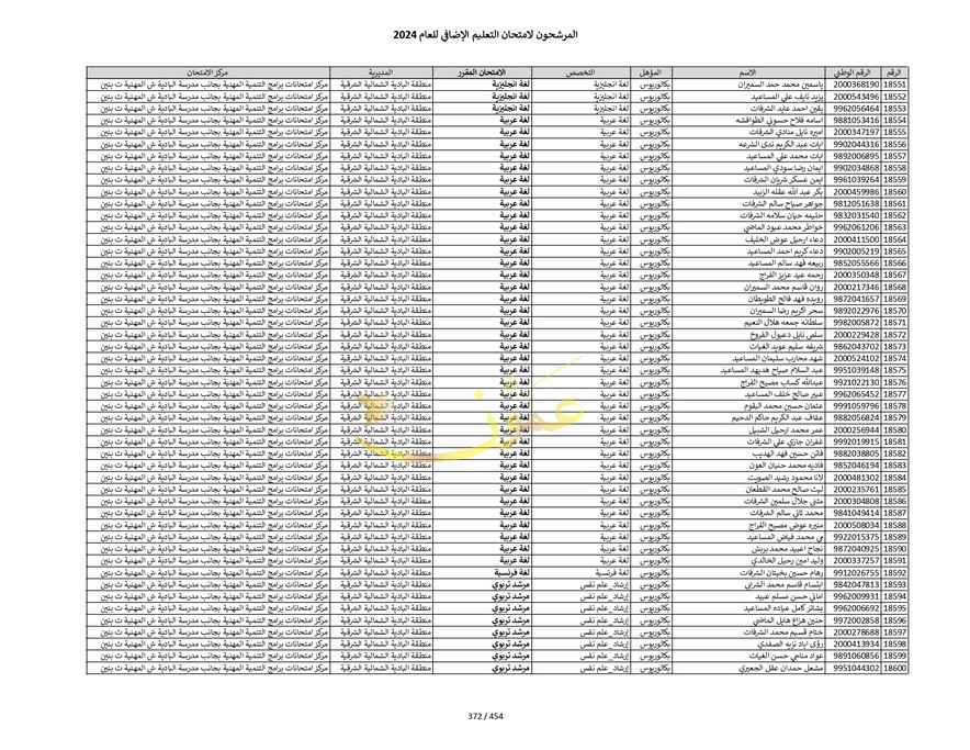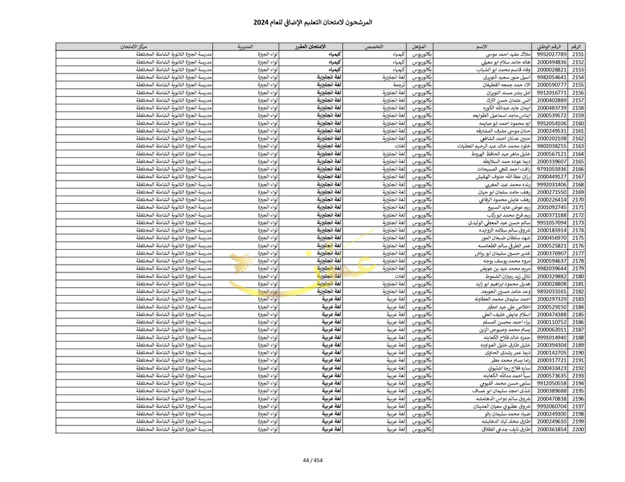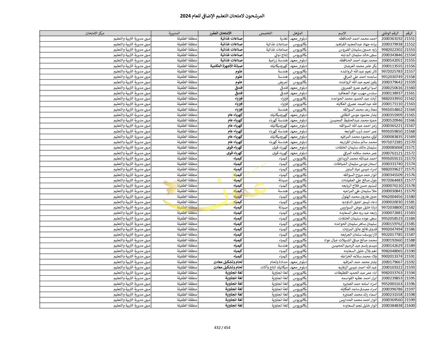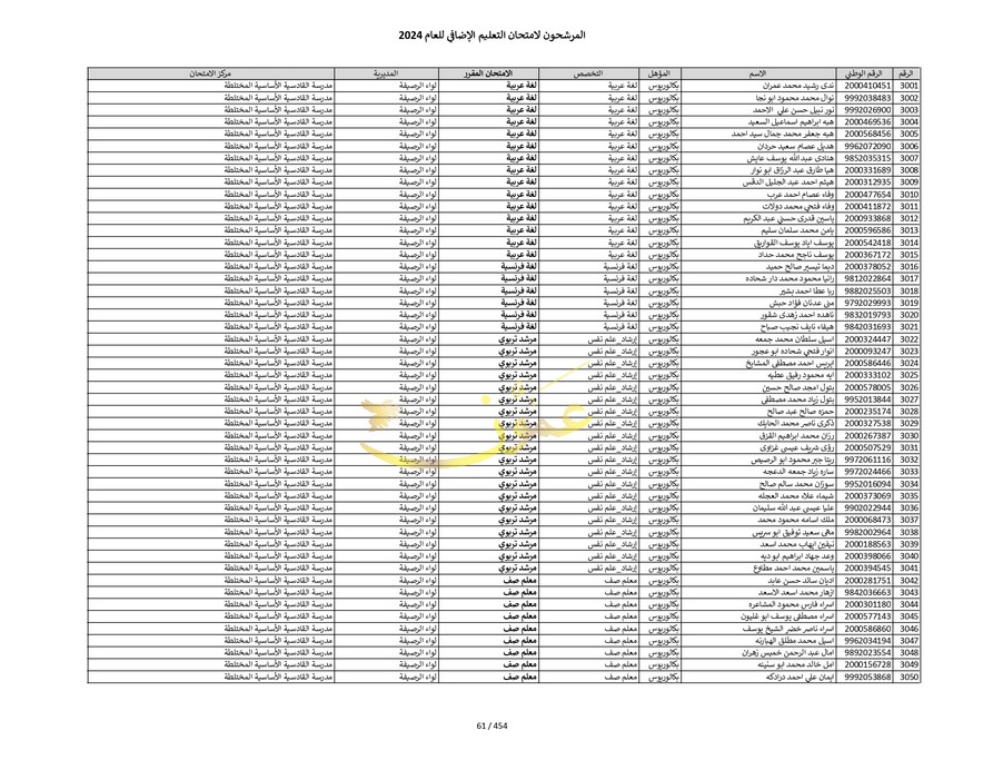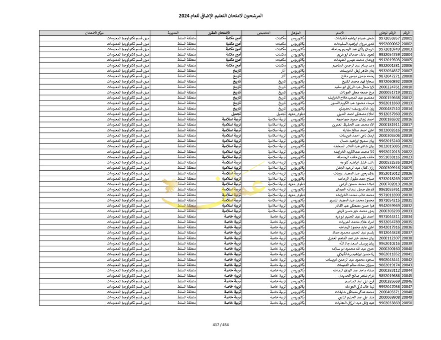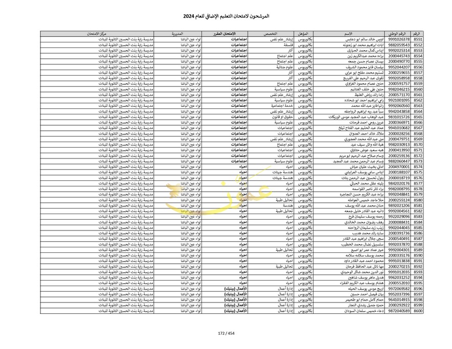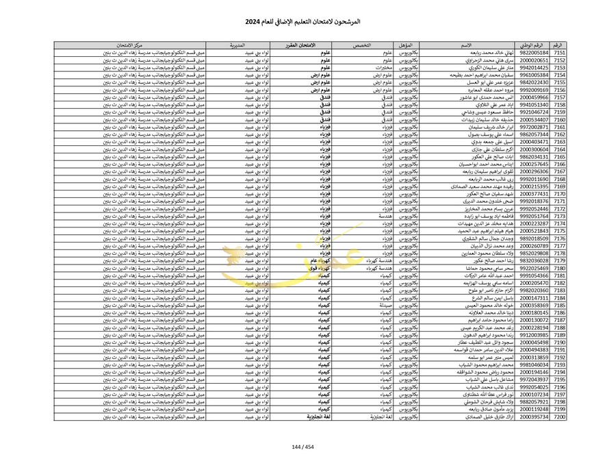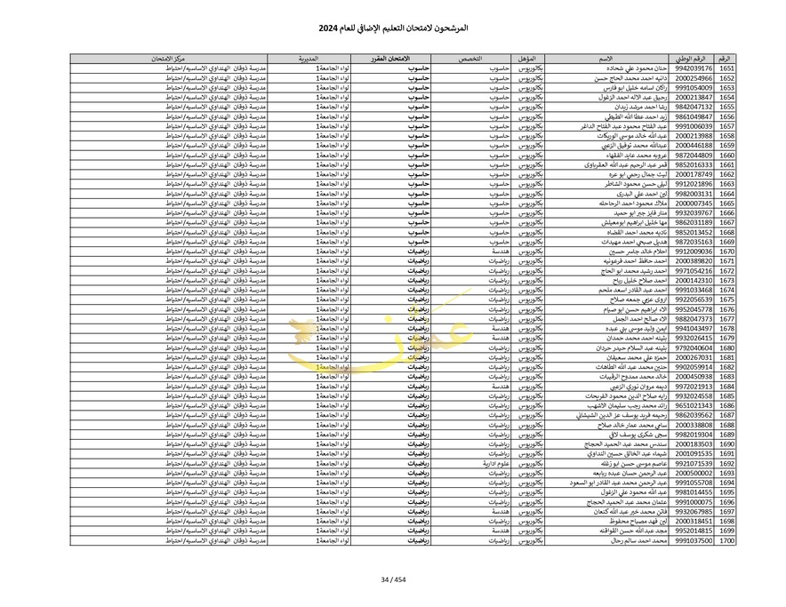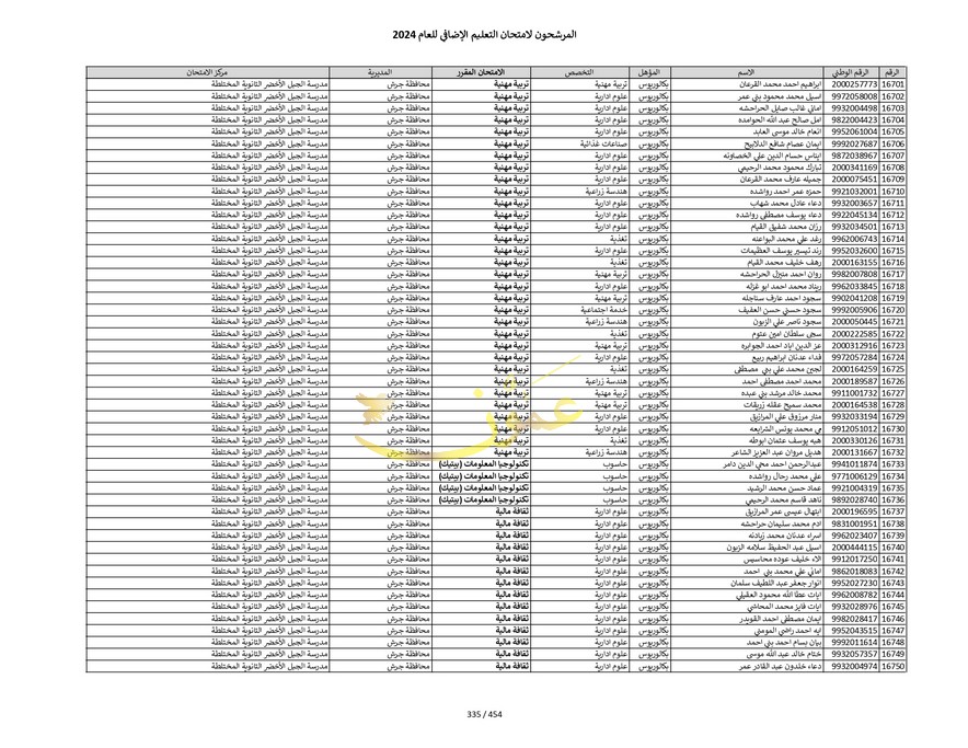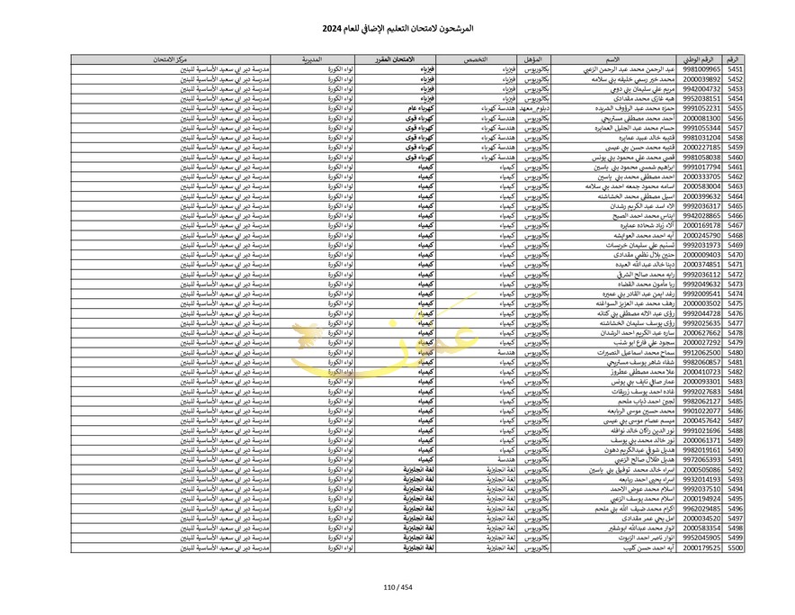 آلاف المدعوين لامتحان التعليم الإضافي (أسماء)