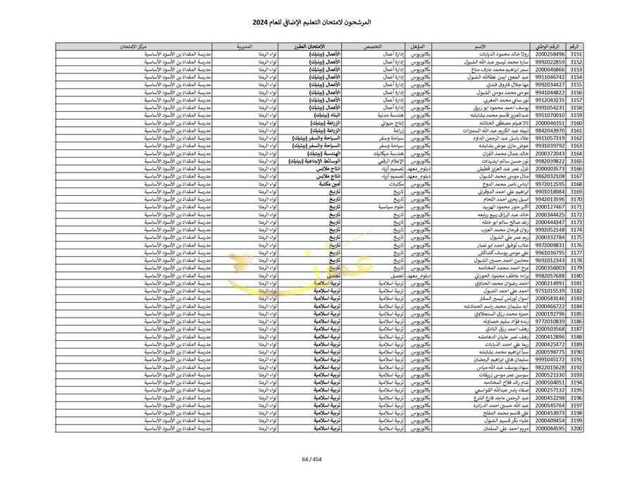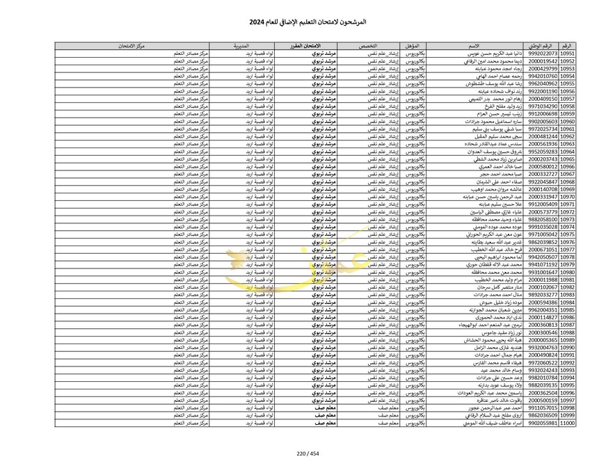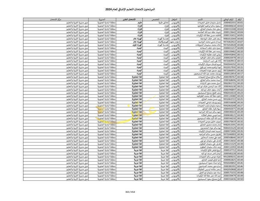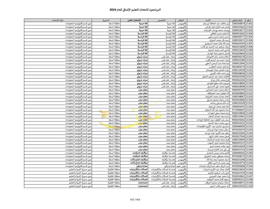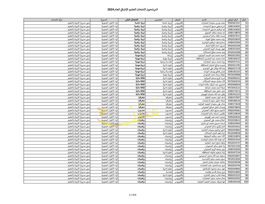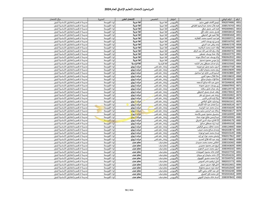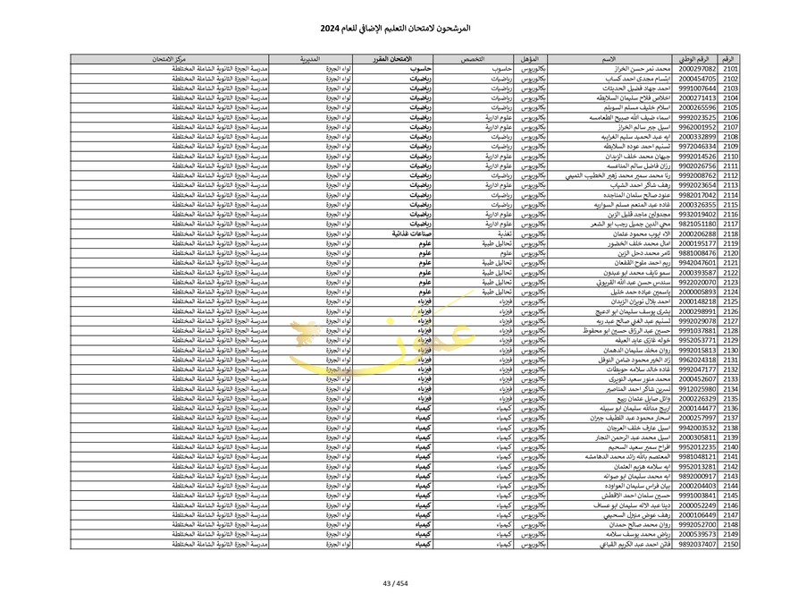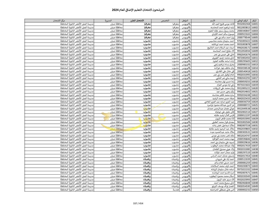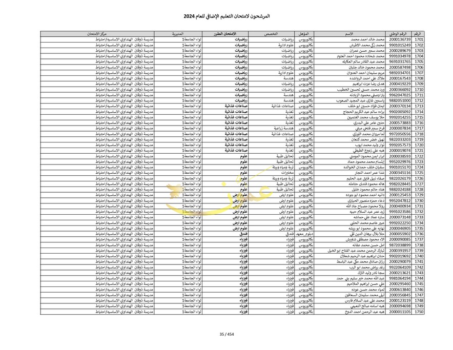آلاف المدعوين لامتحان التعليم الإضافي (أسماء)