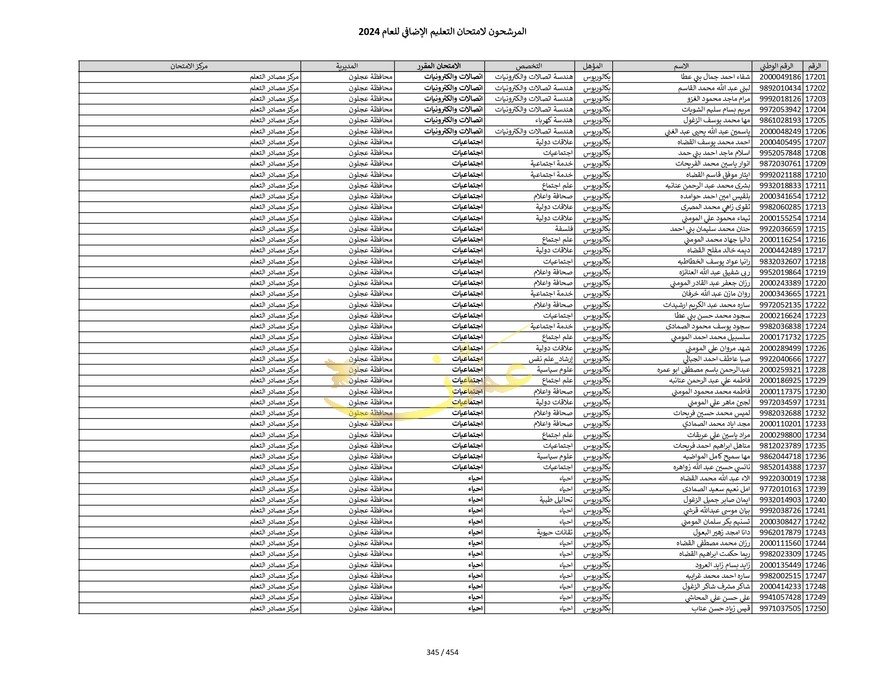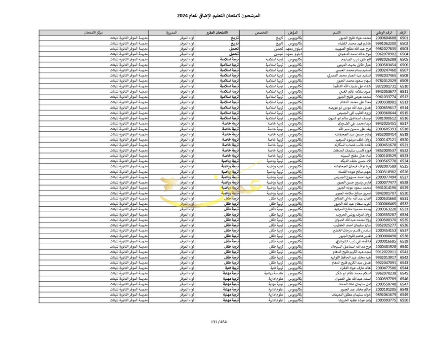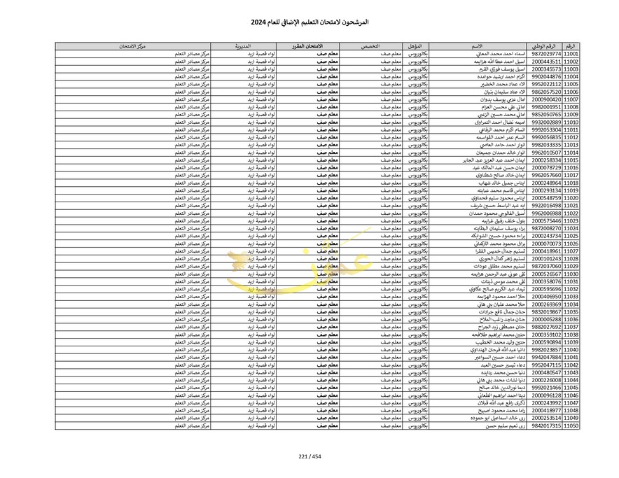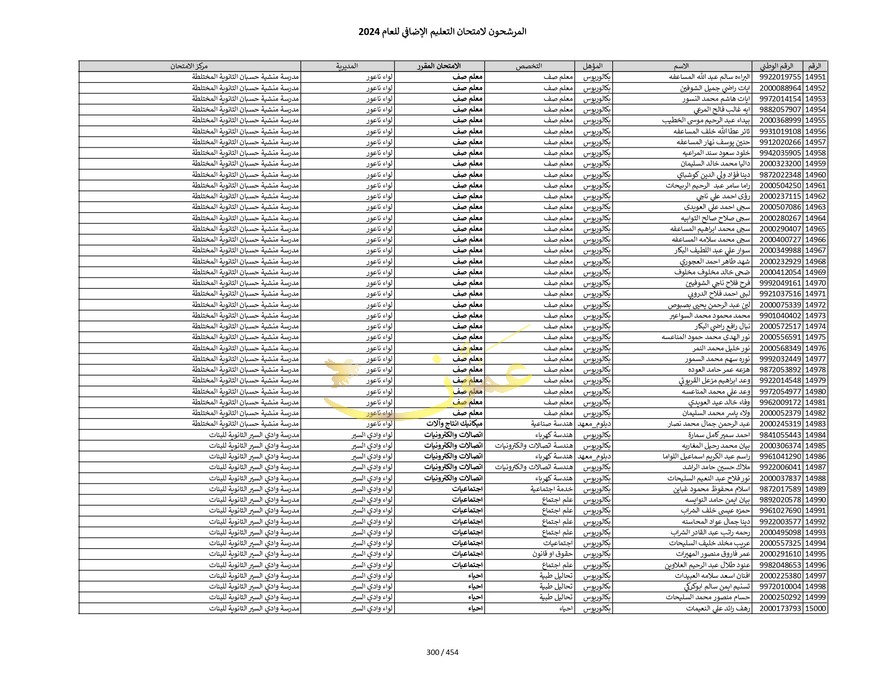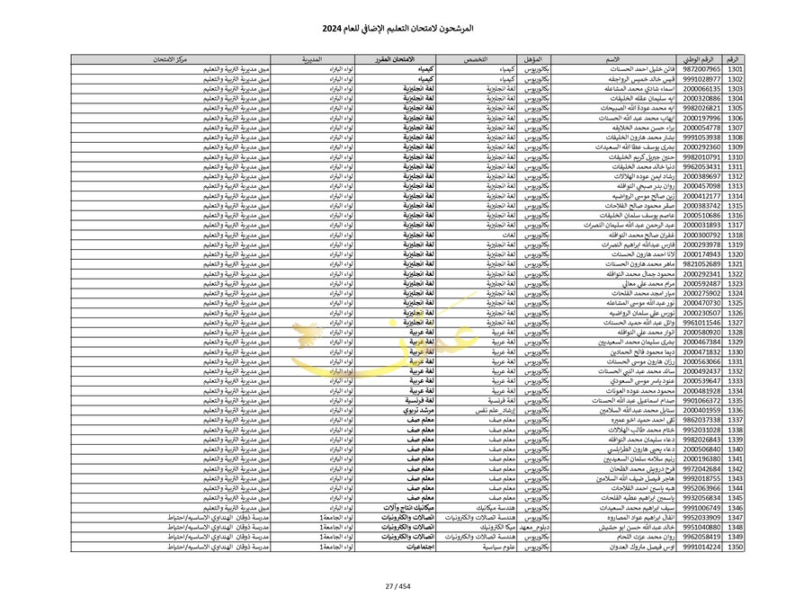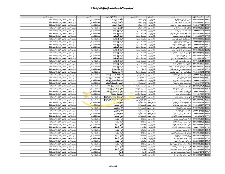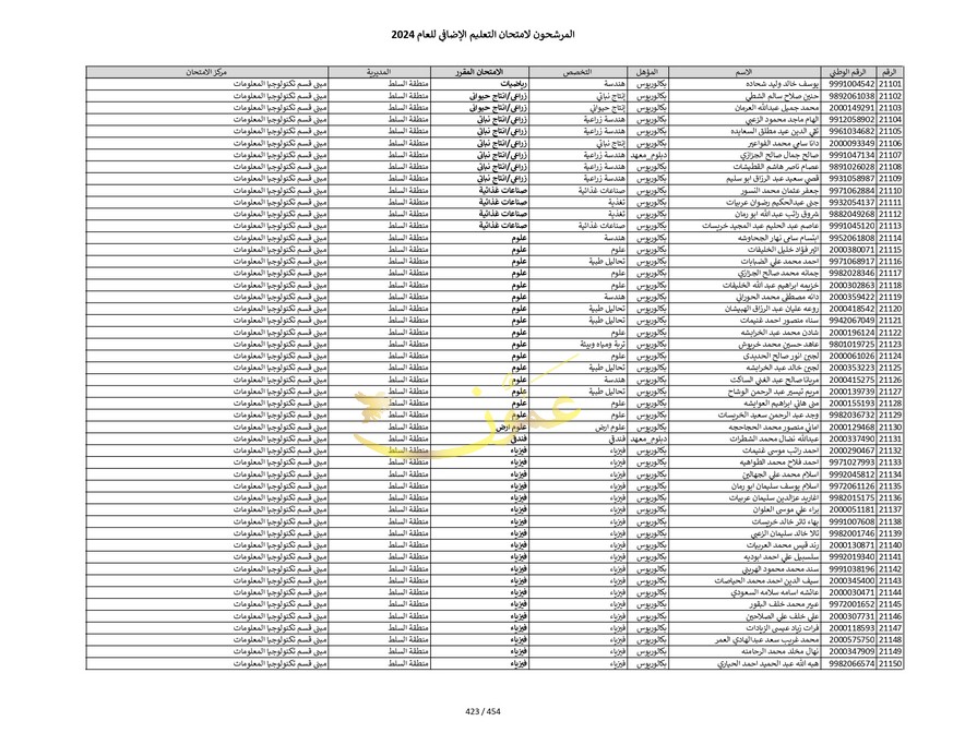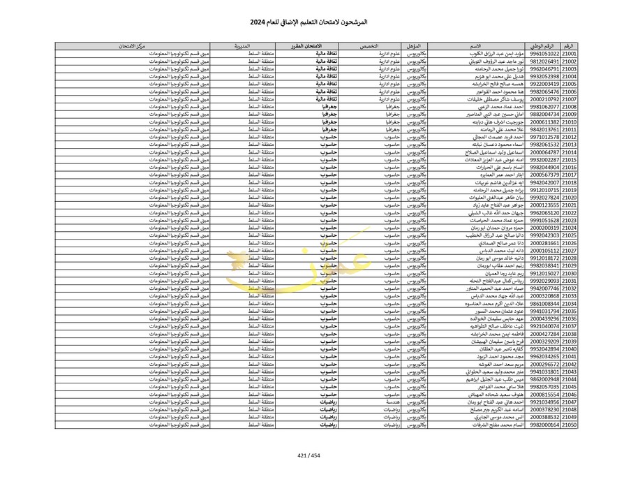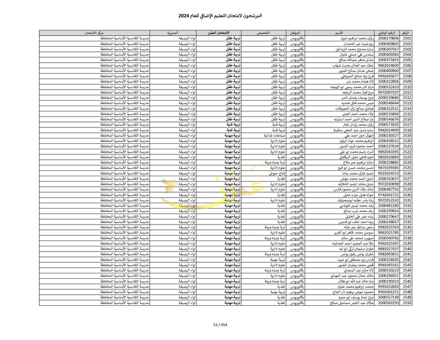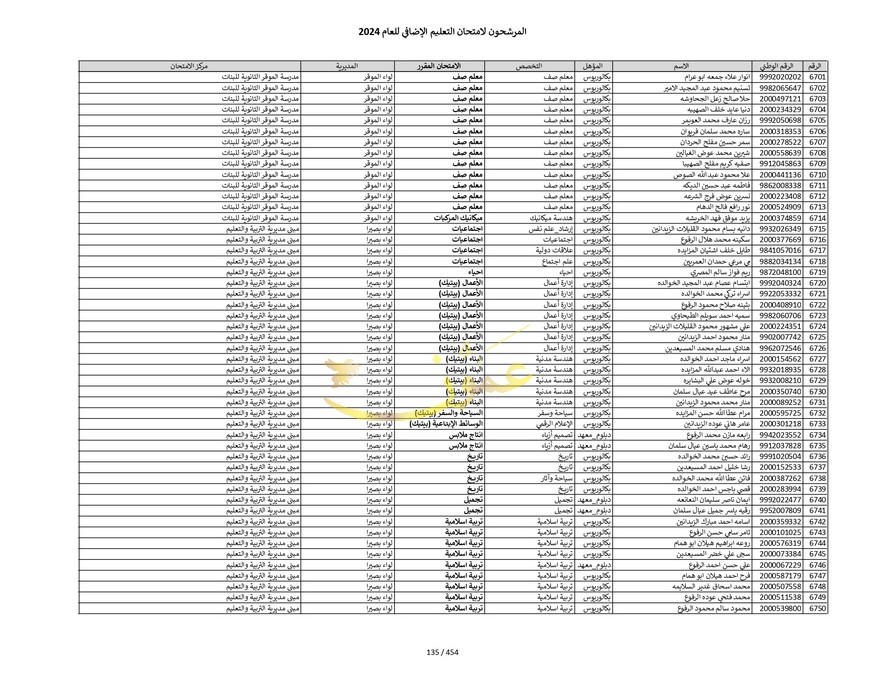 آلاف المدعوين لامتحان التعليم الإضافي (أسماء)