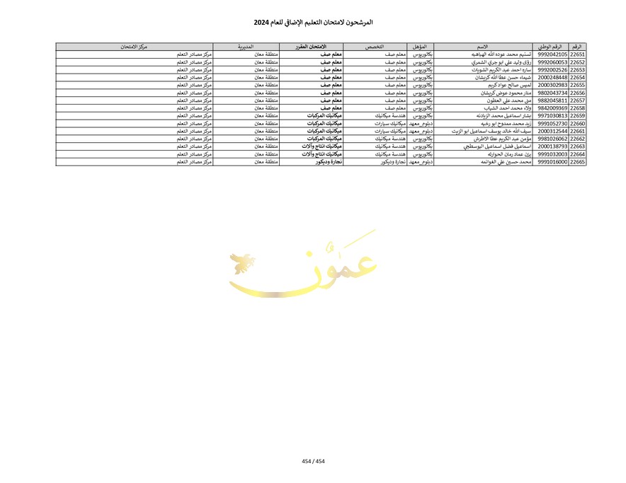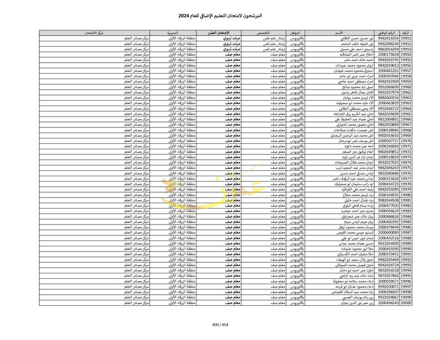 عمون - دعت وزارة التربية والتعليم، اليوم الثلاثاء، 22665 معلما ومعلمة من المرشحين للعمل في التعليم الإضافي، لحضور الامتحانات في الفترة القادمة من 27 / 7 / 2024 إلى 3 / 8 / 2024.
