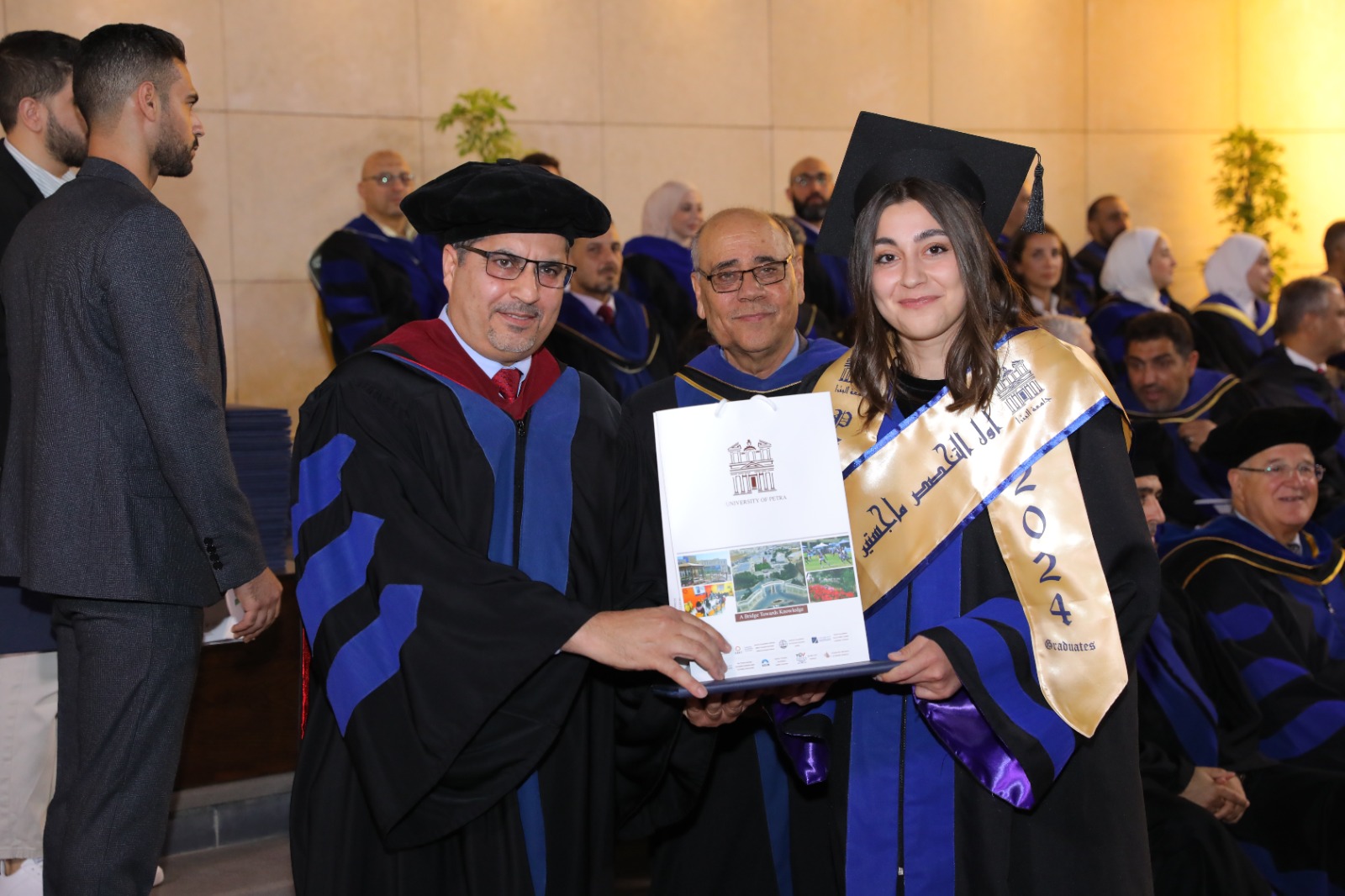 كما ألقت الطالبة مروة بصبوص كلمة الخريجين، معبرة عن امتنانها للجامعة ولأساتذتها قائلة: "في نهاية مراحل حياتنا الجامعية، كثير من الكلام أود قوله عن هذا الصرح العظيم. لقد أعطتنا الجامعة الكثير من العلم والمعرفة، وستبقى ذكريات هذه الأيام في أذهاننا بصعابها وفرحها وجمالها".