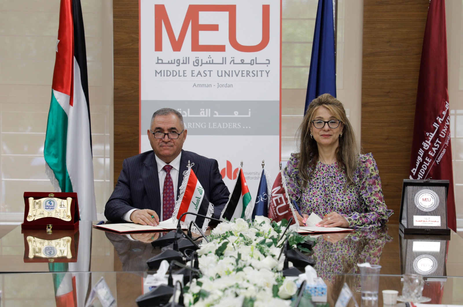 ووقع الاتفاقية عن الجامعة رئيستها الدكتورة المحادين، بحضور نائبها الأستاذ الدكتور أحمد اللوزي، وعن الجامعة العراقية رئيسها الدكتور حسين بحضور المستشار الثقافي في الأردن الأستاذ الدكتور خير الدين الأمين، وآخرين من أصحاب الاختصاص.