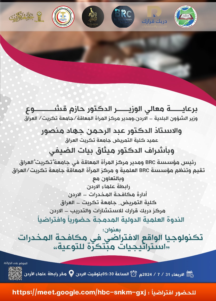جاء ذلك خلال كلمته بندوة علمية تحت عنوان تكنولوجيا الواقع الافتراضي في مكافحة المخدرات نظمتها رابطه العلماء الاردنين بالتعاون مع جامعه تكريت.