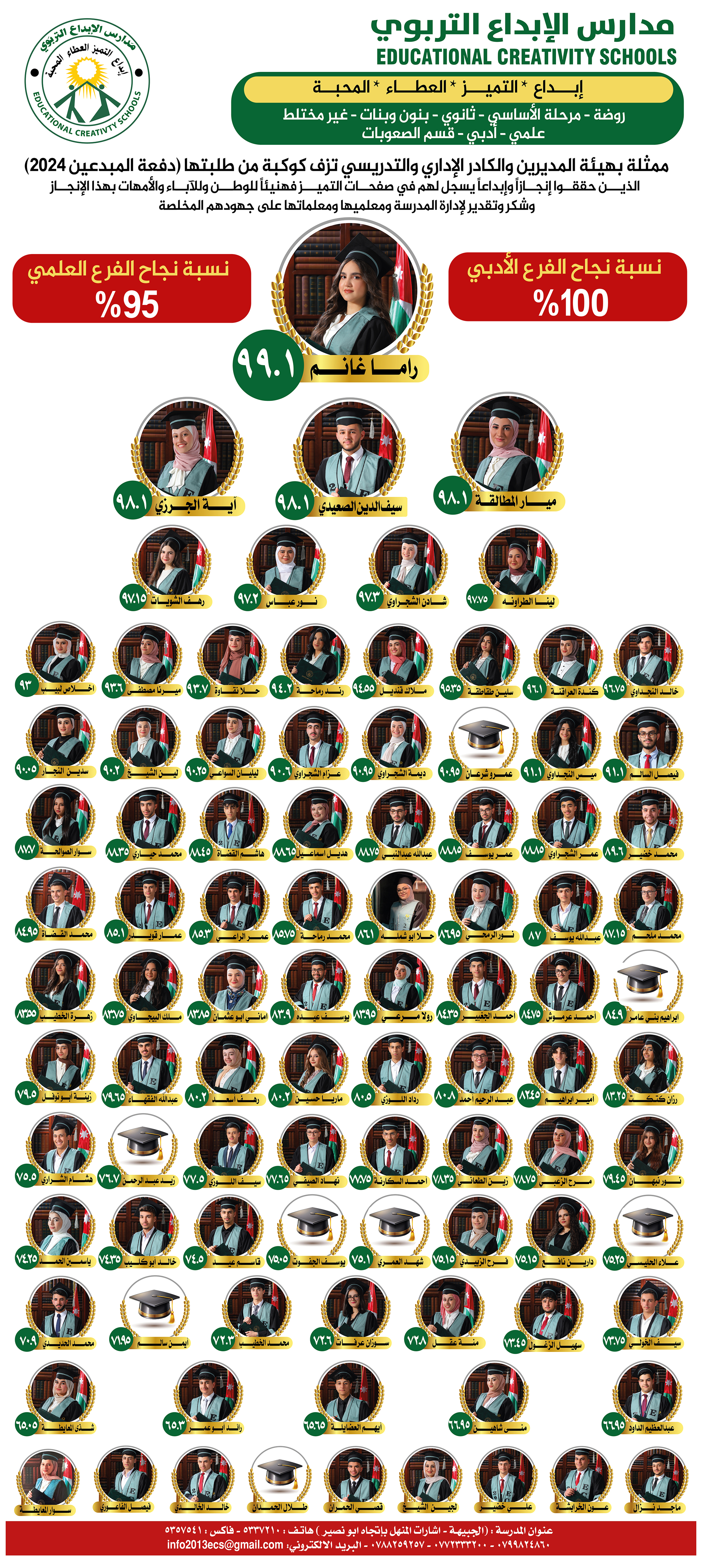 عمون - زفت مدارس الإبداع التربوي ممثلة بهيئة المديرين والكادر الإداري والتدريسي، كوكبة من طلبتها التوجيهي دفعة المبدعين (2024) الذين حققوا إنجازاً وإبداعاً يسجل لهم في صفحات التميز.. |