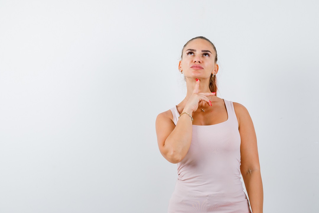 قومي بإمالة رأسك للخلف وانظري نحو السقف.