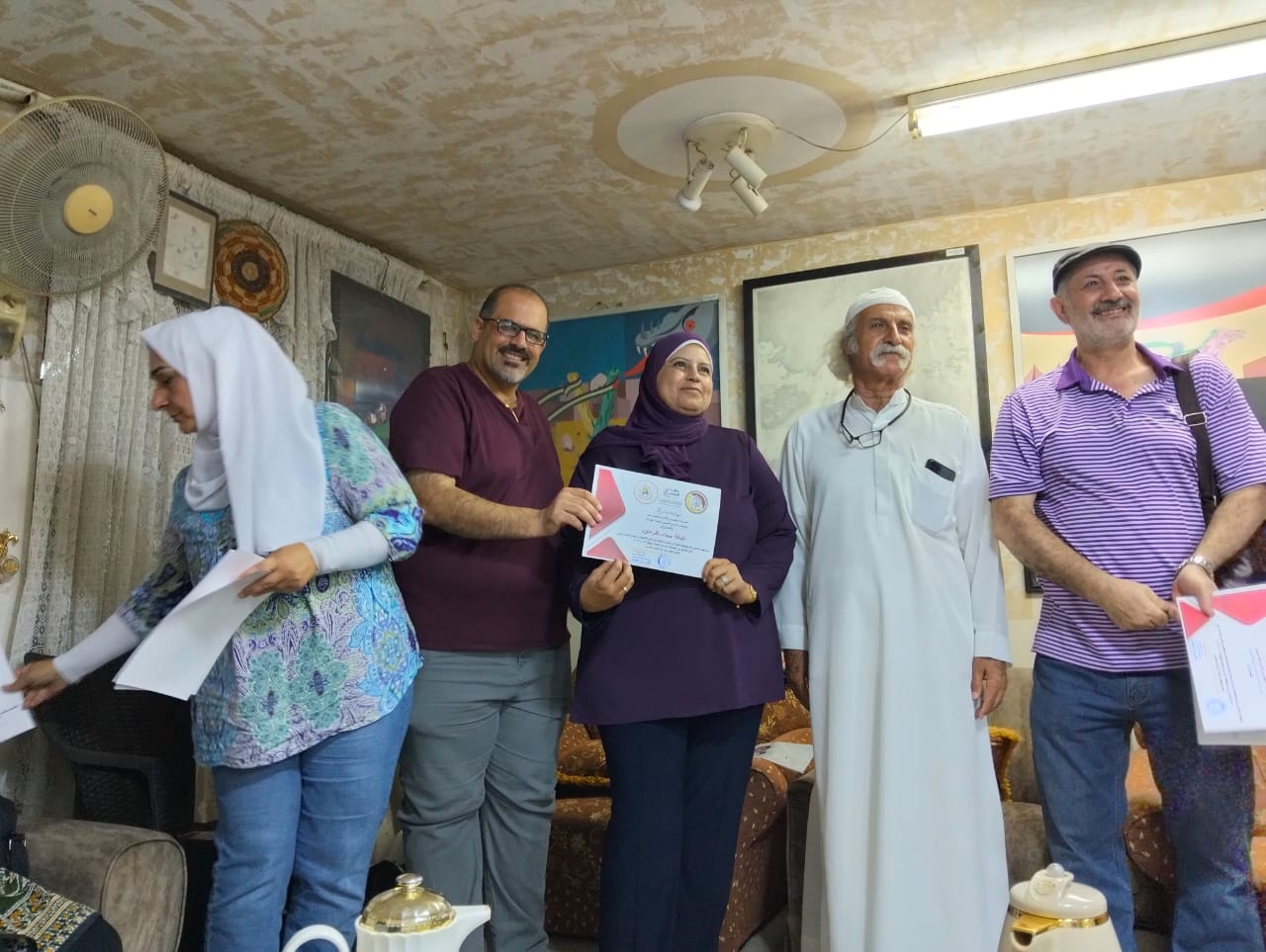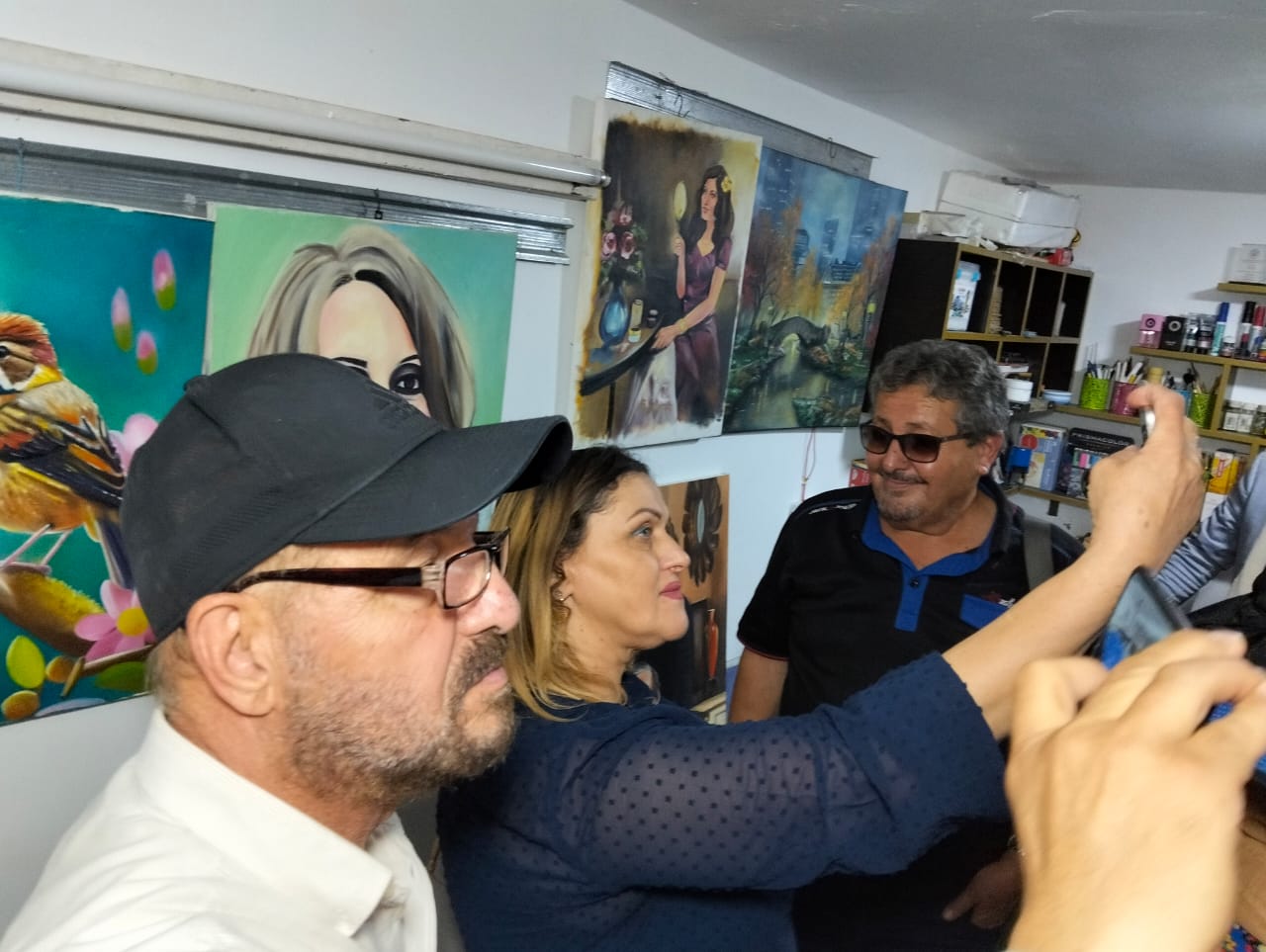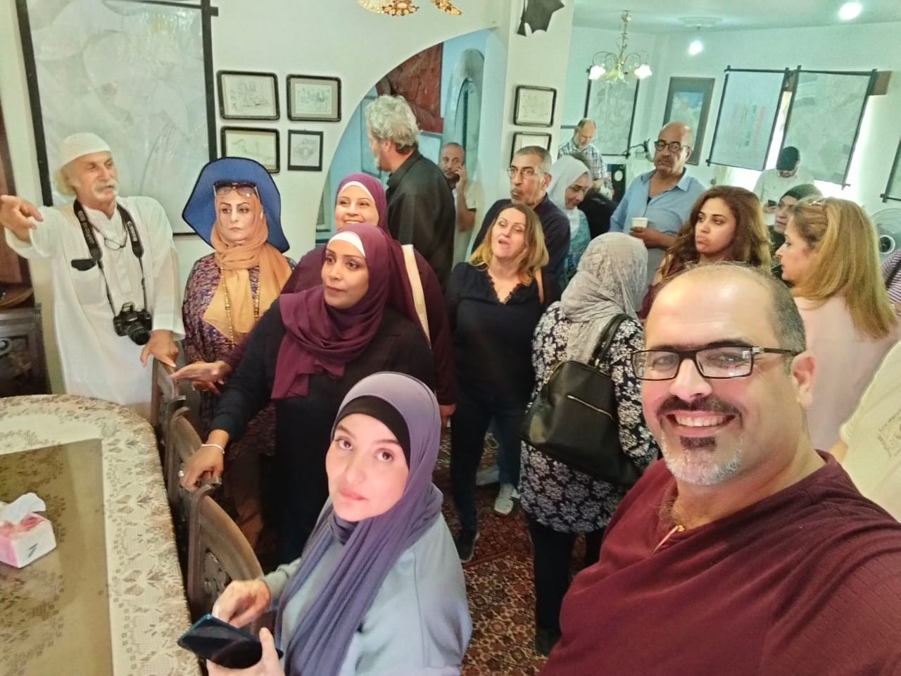 وعن الفنان طارق أبو عرجة الذي رحب بالزوار من الفنانين والمهتمين في منزله، وبدأ يعبرعن اسم كل لوحة والقضية التي تحملها وتاريخ إنجازها وأثنى على دور اتحاد القيصر للآداب والفنون ممثلا برئيسه العمري والذي أشار وأنه قبل أكثر من ثلاث سنوات زاره في بيته وقام بتسجيل ورصد حلقة خاصة في برنامجه أربعاء القيصر الثقافي عن تجربتي الفنية بالتنسيق مع الفنان الشعببي، وليس غريبا أن يعودوا اليوم مع مجموعة من أهل الفن ومحبيه لتجديد العهد بنا وبفننا.