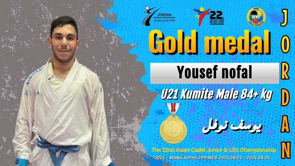عمون - أضاف المنتخب الوطني للكراتيه اليوم ميداليتين ذهبيتين في ختام منافسات بطولة آسيا للناشئين والشباب وتحت سن 21 التي تقام في الفلبين. |