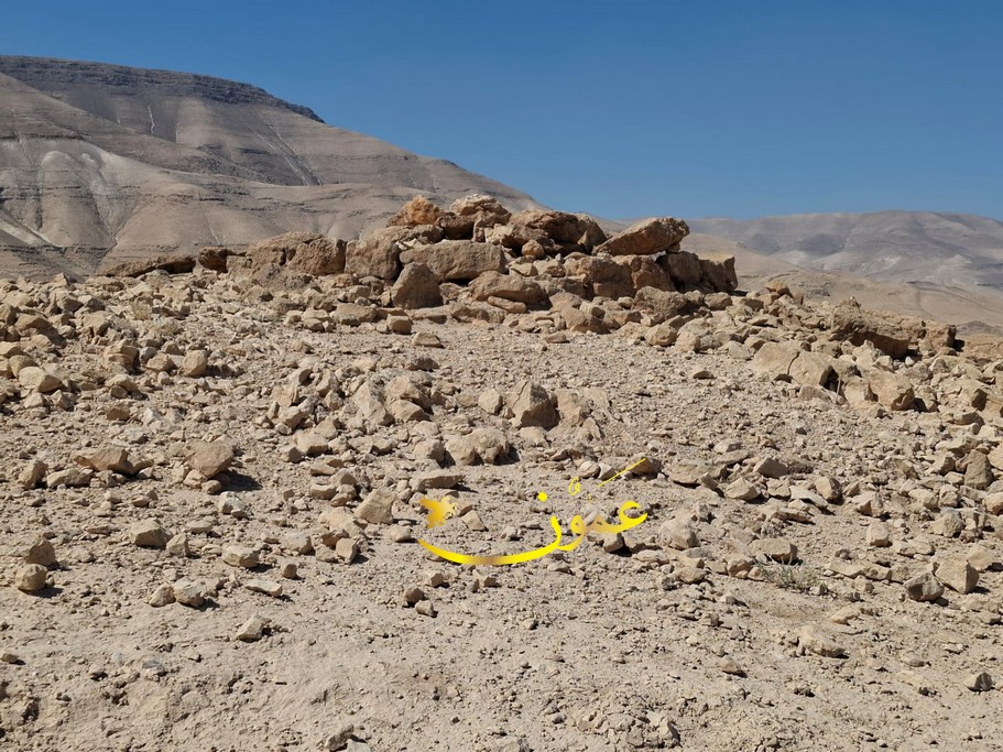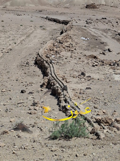 ومن ذلك المفترق أكملنا طريقنا هبوطا سيرا على الأقدام مرورا بالعديد من الرجوم وأبراج المراقبة المشرفة بتمركز على مجرى وادي الموجب والطرق النافذة إليه وما بينها من بيادر عبرتها قنوات إسمنتية منها ما أقيم فوق قنوات تاريخية حاملة للمياه من عين أم الخنبات التي استقينا منها وملئنا ما نقص من قِرب الماء ، وما في المكان من أثر يؤكد على أن المكان كان جنان ومزارع قبل أن يجف وتنحسر فيه الزراعة ولدفئه فهو خير مكان لزراعة أجود أنواع الجوافة.