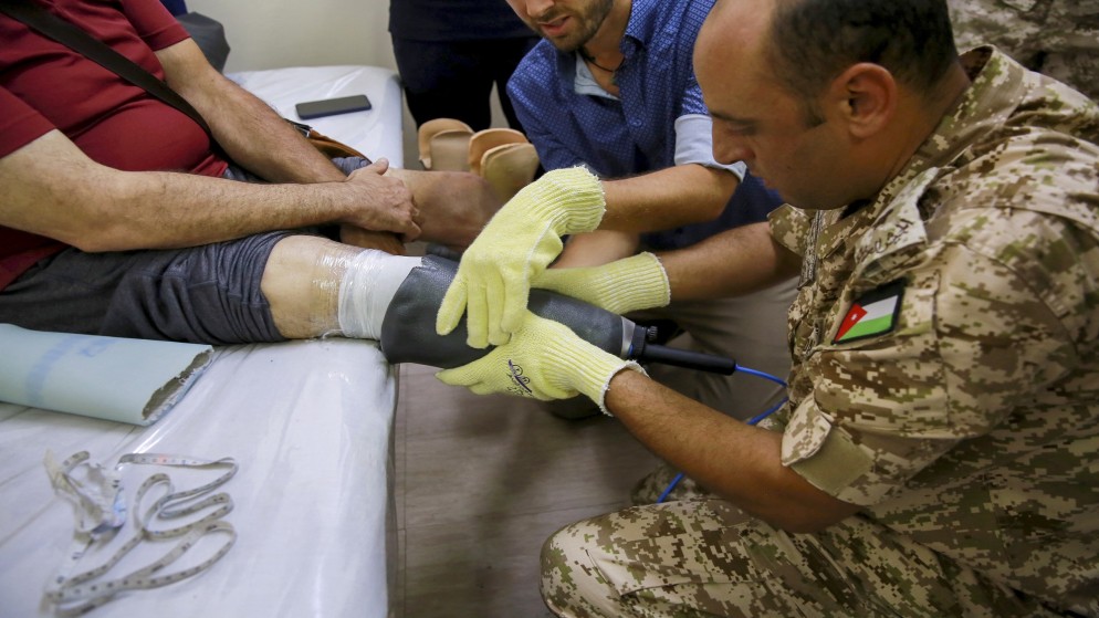 وسيتم إرسال عيادتين متنقلتين بجميع المعدات اللازمة لتركيب الأطراف الاصطناعية لمحتاجيها الذين لا يمكنهم مغادرة قطاع غزة، وستقوم بهذه المهمة كوادر الخدمات الطبية الأردنية الملكية ضمن المستشفيات الميدانية الأردني في القطاع.