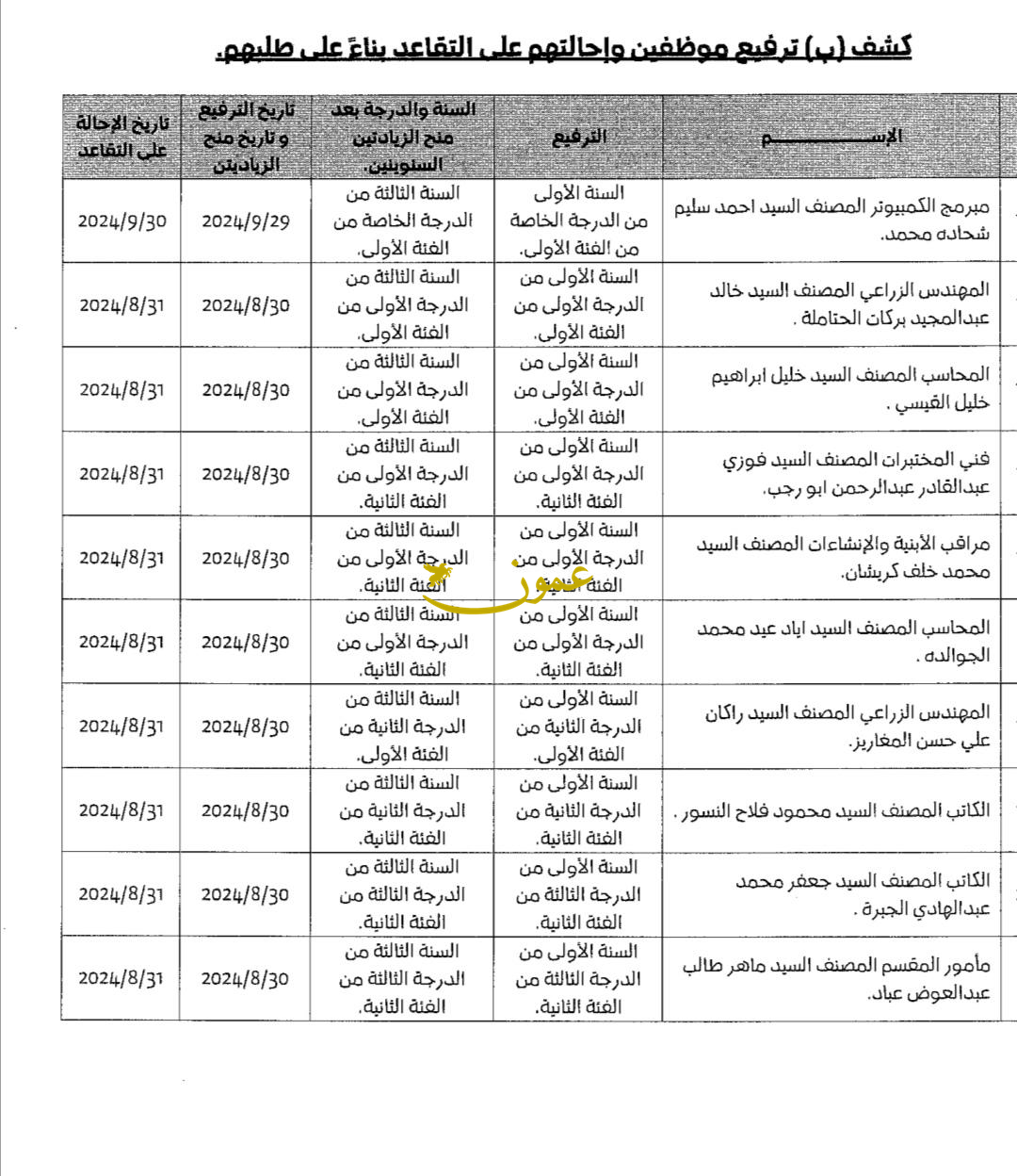 إحالة مستشارين ورؤساء أقسام في الأمانة إلى التقاعد (أسماء)11-09-2024 12:31 PM