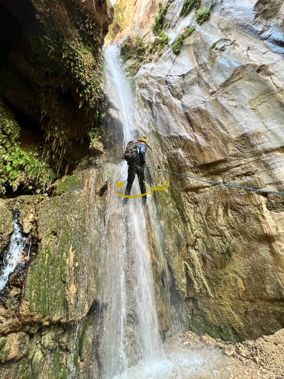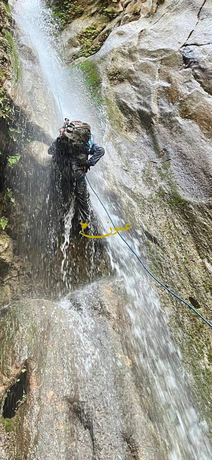 أصبح إنزالنا الآن بمحاذاة شلال عامودي عذب المياة شديد الإنهمار وضيق المدخل حيث احتاجنا لتركيز جيد بموضع الأقدام خشية الإنزلاق بفعل الطحالب، والجميل فية أنه كان يغمرك بشكل كامل بارتفاع 28 مترا تقريبا، وهو الإنتعاش الذي احتجناه كثيرا لتجديد واختبار القدرة، تلاه مسقط بسيط وآخر 7 أمتار وصلنا فيه لسيل وادي إبن حماد والتي تعد لنا كنقطة إستراحة، احتجنا أن نكافئ أنفسنا بالتمدد قليلا في مجرى السيل بينما انتظرنا اكتمال عدد الفريق للتوجه معا نحو مركز الزوار ، وقد انهينا مسافة 11 كيلومتر بسلام ونحمل بدواخلنا شعلة متقدة بروح وتعاضد الفريق كما حملنا أجمل الصور وما انطبع في الأذهان عن ذاكرة المكان.