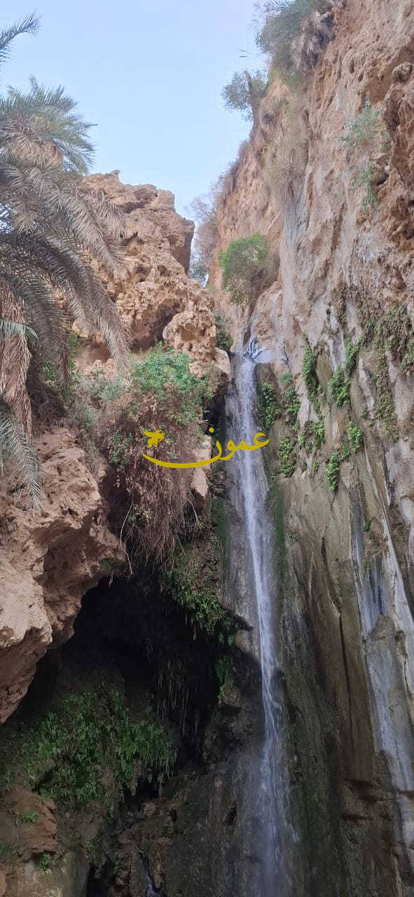 وبعد ممارسة عملية الإنزال توالت العيون وعظم الجدول المنساب بين ما نبت وتشابك من نباتات القصب والدفلى وتحت ما تعلق منها واعتلى فوق الصخور من أشجار كالنخيل والتين والحماط ،وتغير في طبيعة المسار من جاف إلى مسار أخضر وجداول من الماء وينابيع في مجرى يضيق بواجهة صخور تكسوها الطحالب والسرخسيات وكأنك في عالم آخر تعجز الكلمات عن وصف جماله وصولا للإنزال الخامس ضمن المسار .