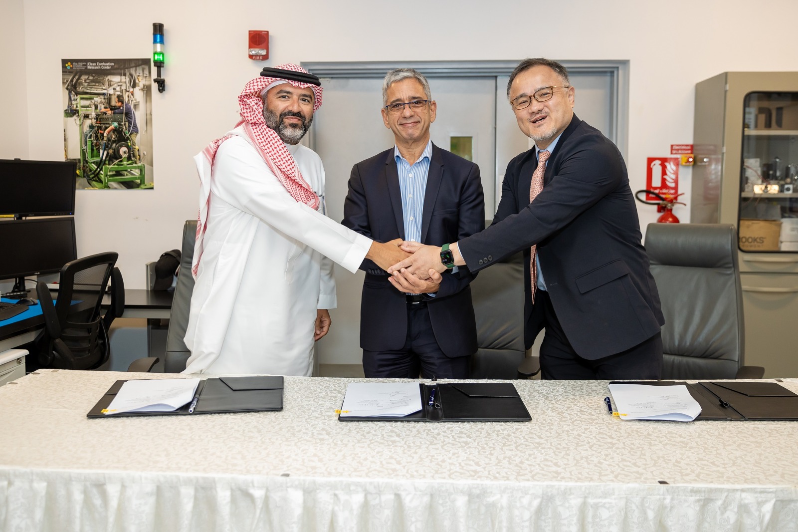 بموجب هذه الشراكة، منحت شركة تويوتا جامعة الملك عبدالله للعلوم والتقنية وحدات خلايا الوقود ذات غشاء التبادل البروتوني، وأنشأت الجامعة مختبرًا مبتكرًا ضمن منصة أبحاث الطاقة النظيفة دعمًا لتطوير هذه التقنيات وتعزيزًا لجهود المملكة لقيادة ابتكارات الهيدروجين، وخاصة فيما يتعلق بتصميم خلايا وقود تتناسب مع الظروف البيئية الفريدة للمنطقة.