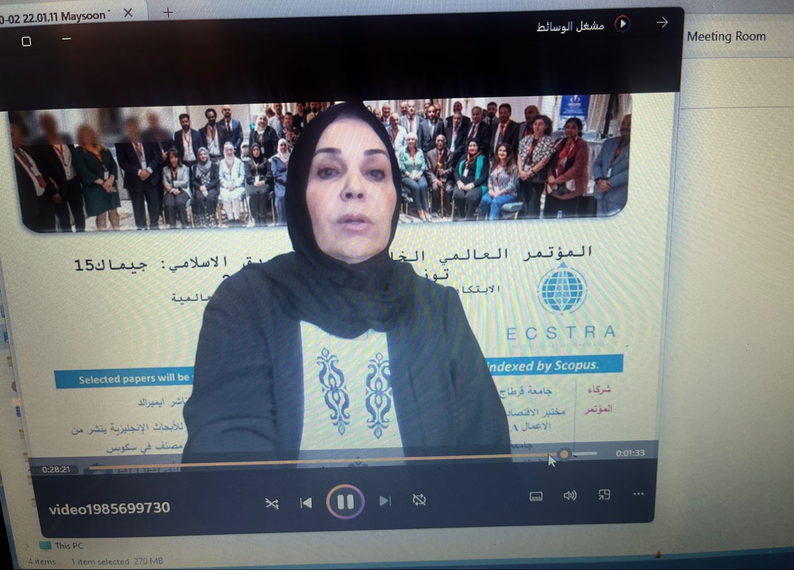 وفي ختام مشاركتها، قدمت الدكتورة السليم شكرها لرئيس المؤتمر، البروفيسور بكر السرحان من جامعة الأميرة سمية للتكنولوجيا في المملكة الأردنية الهاشمية، وللدكتور علي هلال البقوم على إسهاماتهما المميزة في إنجاح المؤتمر.