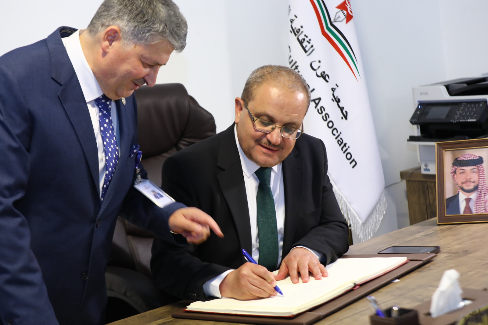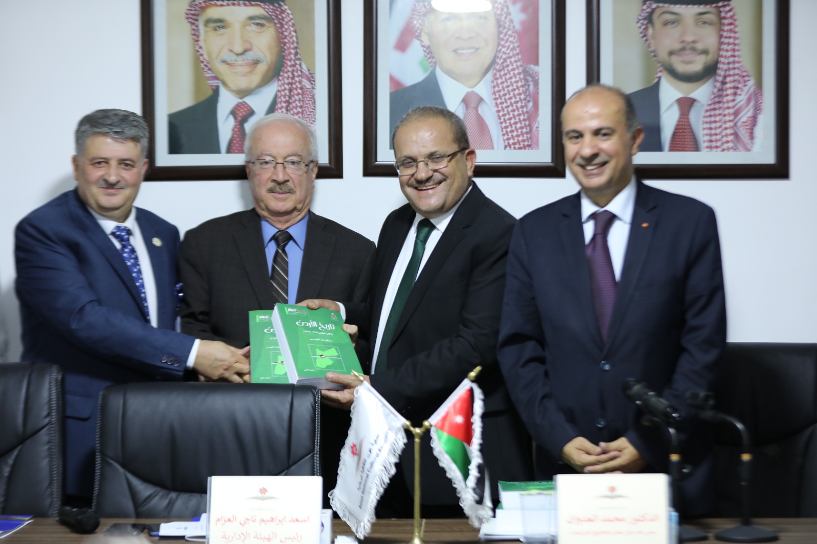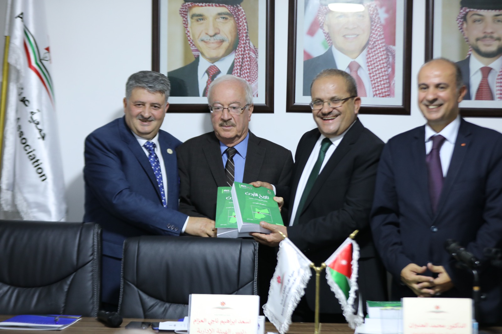 كما قدم الأستاذ الدكتور مروان سليمان الموسى العضو المؤسس/عضو الهيئة الإدارية لكل من الدكتور العبيدات والعدوان نسخة عن موسوعة "تاريخ الأردن" في القرن العشرين من عام 1900-1995 وهي إحدى مقتنيات مكتبة جمعية عَون الثقافية الوطنية/مكتبة "المؤرخ سليمان الموسى"