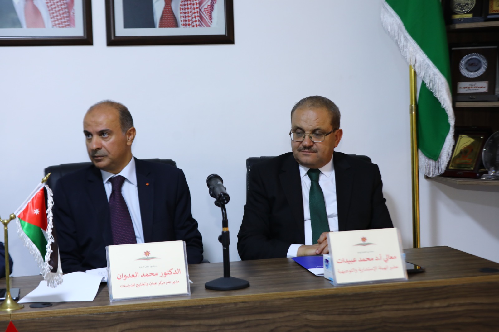 عمون - عقدت جمعية عَون الثقافية الوطنية يوم أمس الأول في مقرها الرئيسي بالعاصمة عمان ندوة بعنوان: (إرادة شعب وطموح ملك-وثائق عقل الدولة) برعاية الدكتور محمد طالب عبيدات عضو الهيئة الإستشارية والتوجيهية للجمعية وإستضافت فيها متحدثاً الدكتور محمد عيسى العدوان رئيس مركز عمان والخليج للدراسات الإستراتيجية.