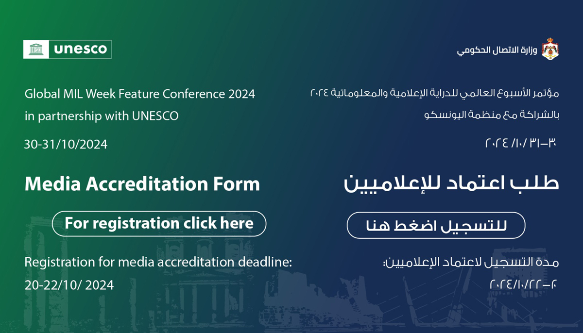 يشار إلى أن مجلس الوزراء وافق على استضافة الأردن للمؤتمر الثالث عشر للأسبوع العالمي للدراية الإعلامية والمعلوماتية، بتنظيم من منظمة الأمم المتحدة للتربية والعلم والثقافة (اليونسكو) بالشراكة مع وزارة الاتصال الحكومي.