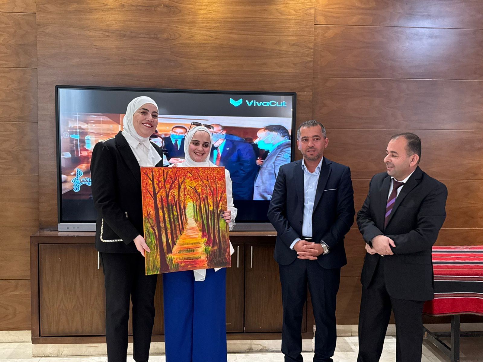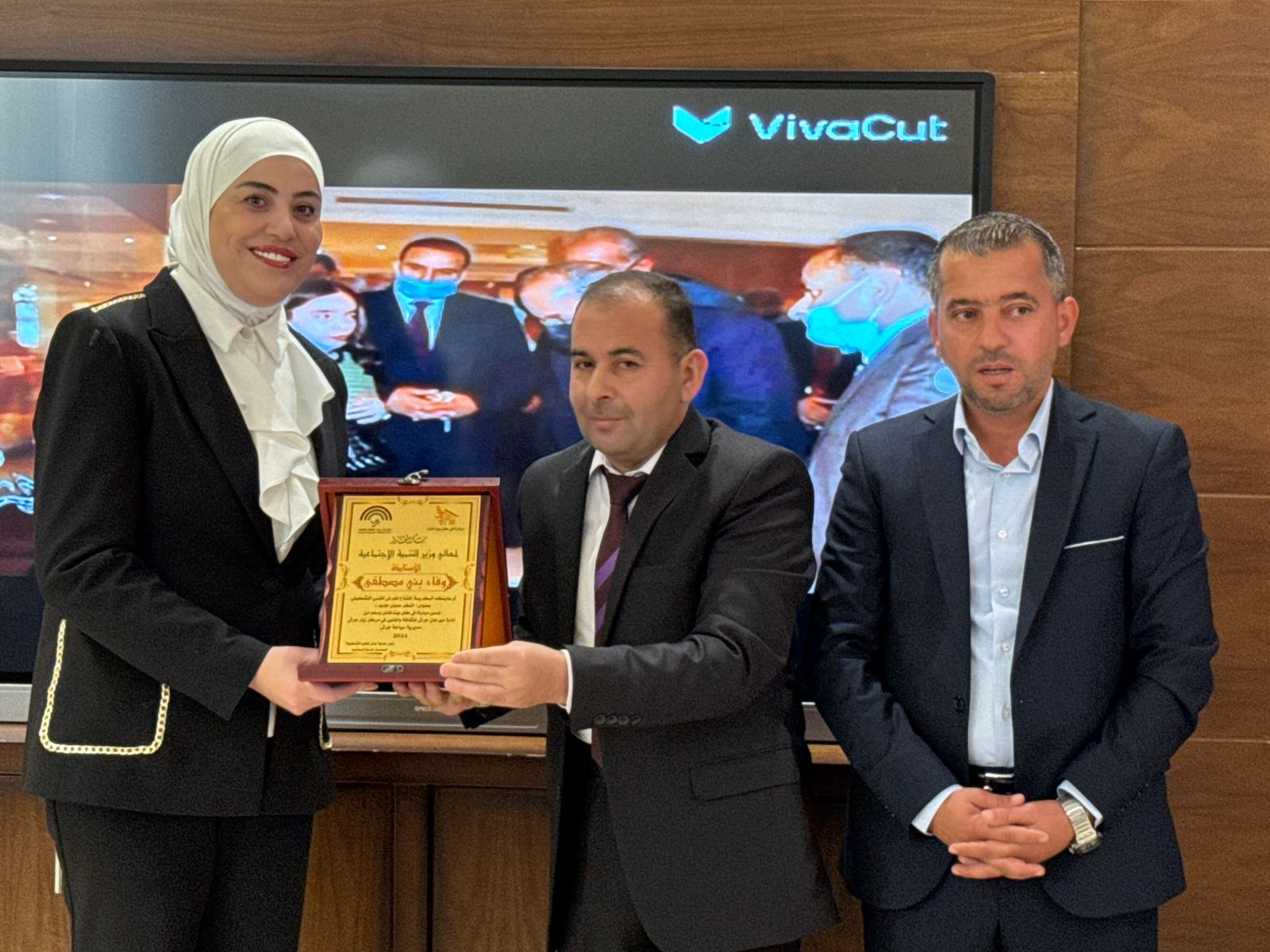 و في ختام الافتتاح كرمت وزيرة التنمية المشاركين بالمعرض بهدايا مقدمة من وزارة التنمية ومبادرة في كل بيت فنان وعدد من الداعمين بدروع تقديرية كما قدمت احدى المشاركات لوحه فنية للوزيرة كما قدم الفنان العتوم درعا تقديريا للوزيرة بني مصطفى.