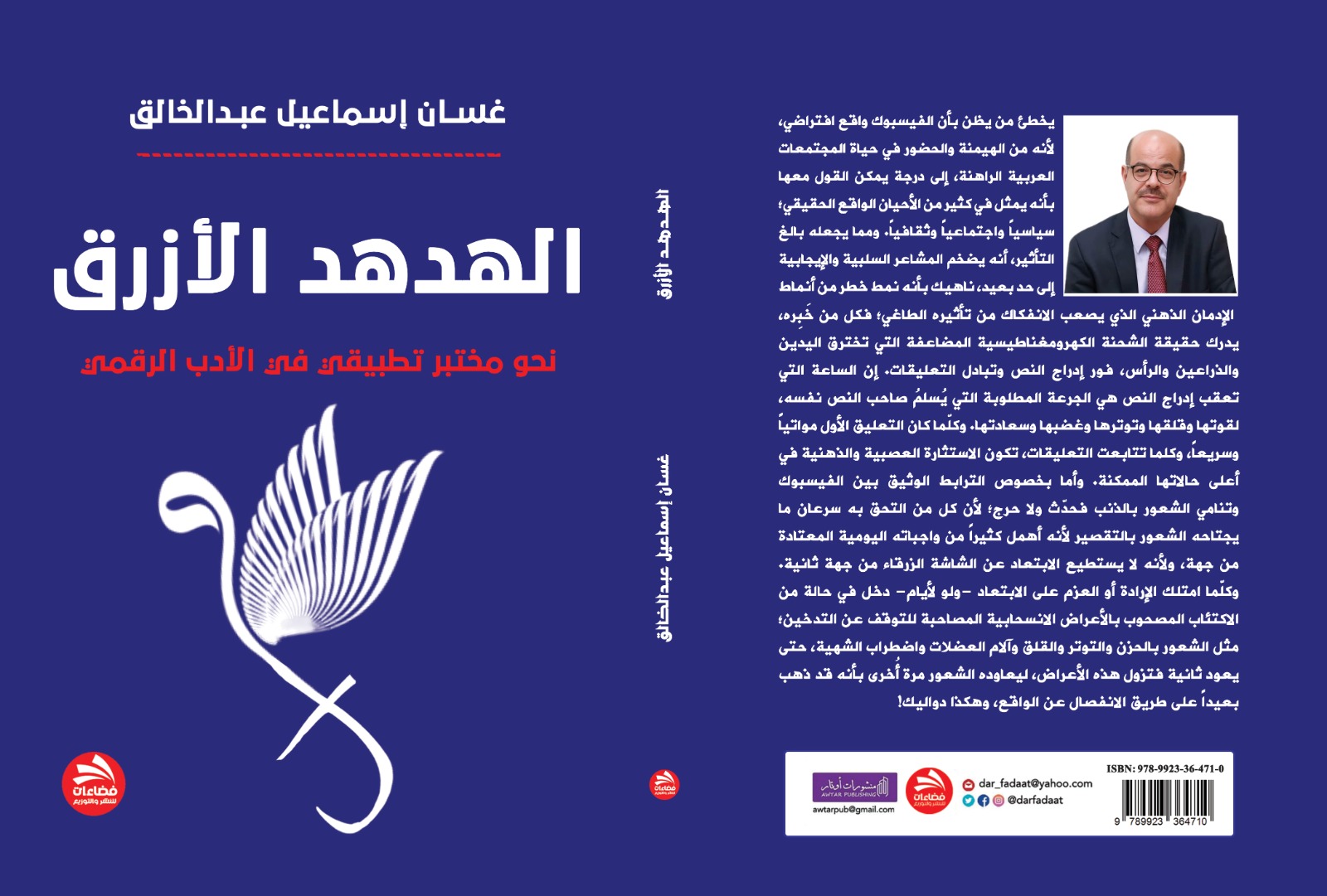 عمون - عن دار فضاءَات للنشر والتوزيع في عمان، صدر للكاتب والأكاديمي الدكتور غسان عبد الخالق كتاب (الهدهد الأزرق؛ نحو مختبر تطبيقي في الأدب الرقمي)، الذي جاء في 250 صفحة من القطع الكبير.