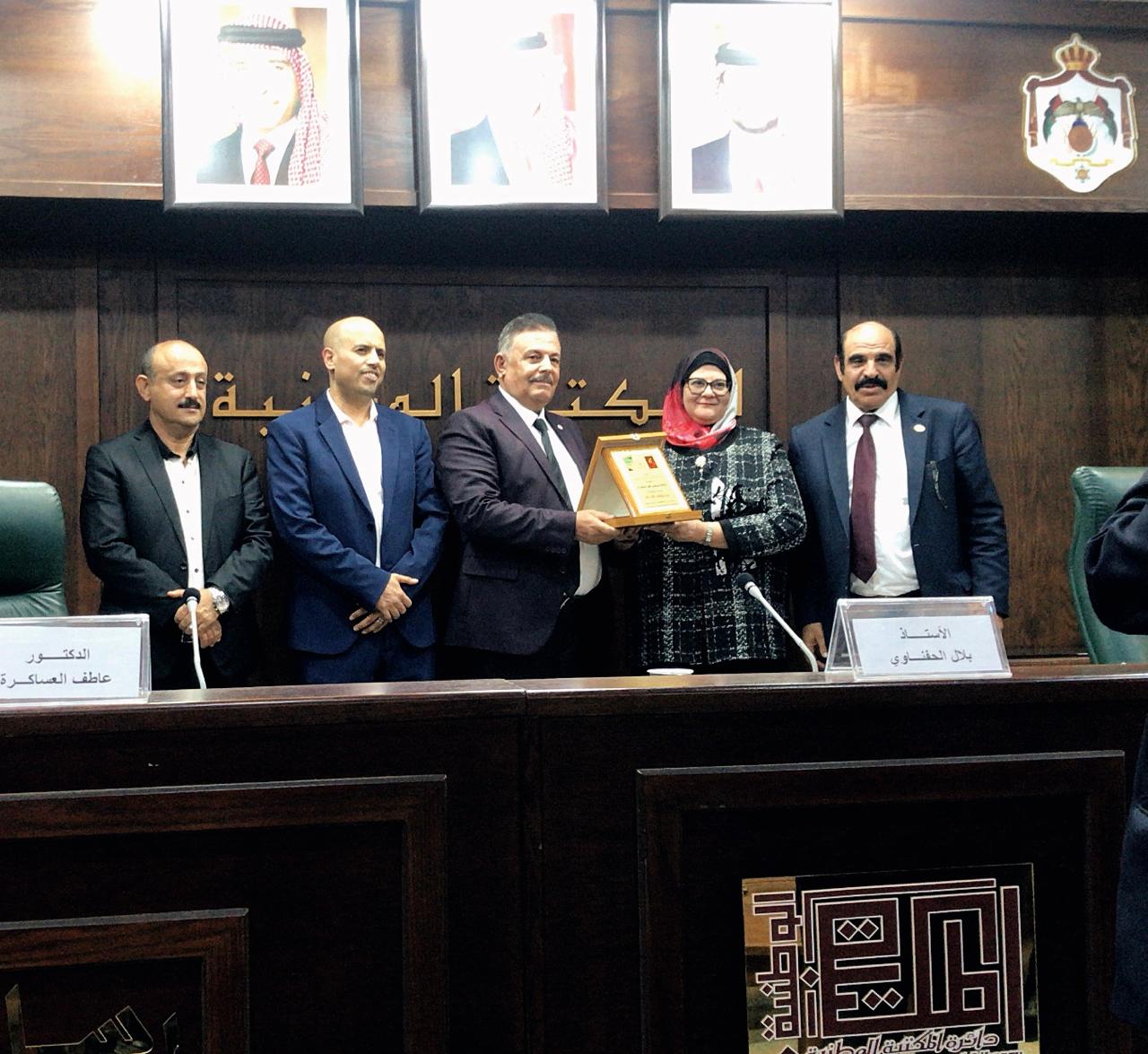 وفي نهاية اللقاء، قرأت الكاتبة من خلال فصول الكتاب الثمانية بعض المعلومات القيمة حول أهمية التحول الرقمي. ومن ثم تفضل مدير دار يافا للطباعة والنشر الأستاذ وائل عبد ربه بتقديم درع تكريم للمهتدي.