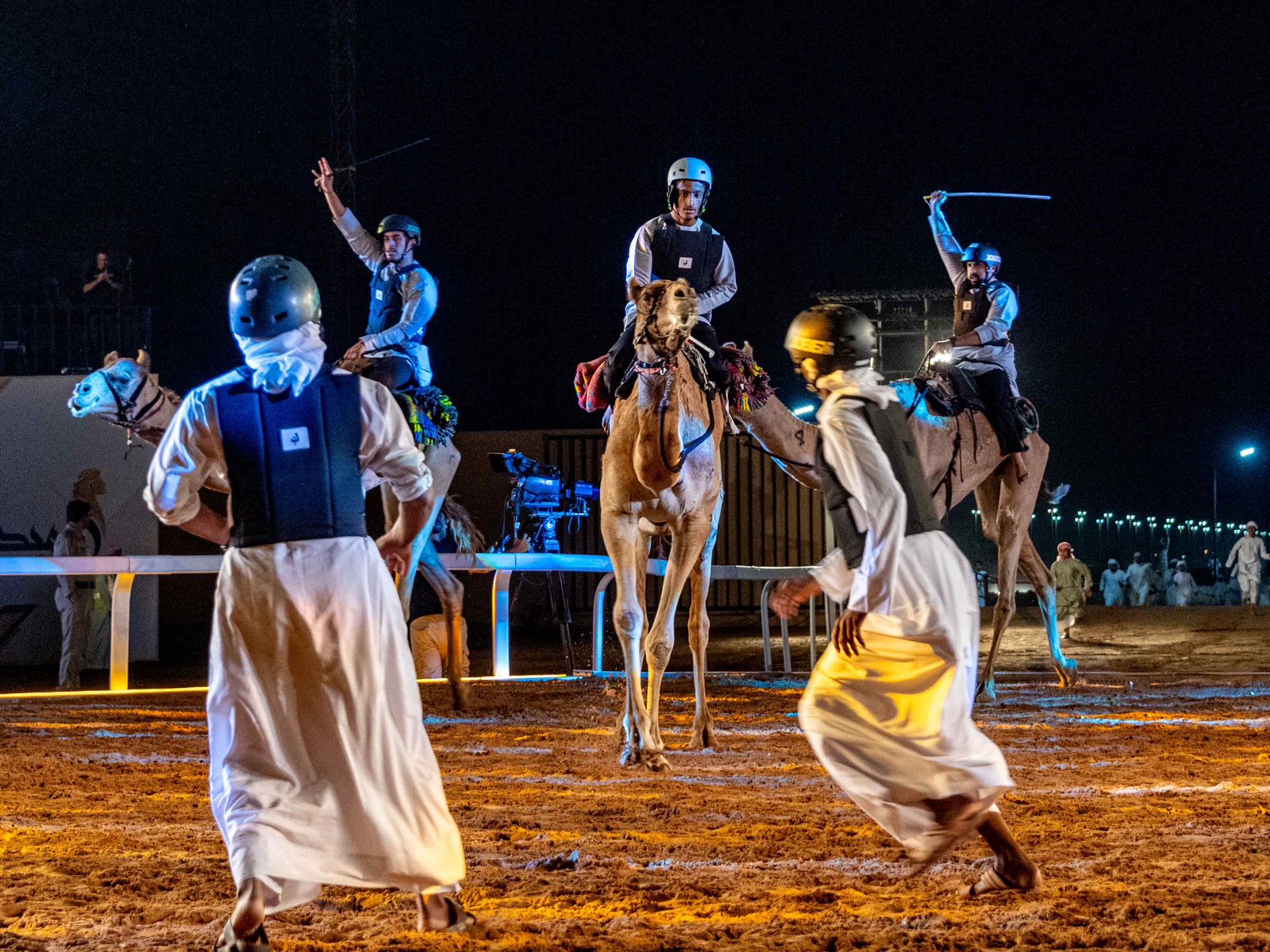 وفي سباق الهجن الذي تم تصميم مضمار خاص به، ليكون خط النهاية داخل قلعة الميدان، حيث أكسبت السباق الكثير من المنافسة والندية، وفيه تفوق سالم الكتبي وزايد المرّي، حيث استقبلت المطيتان الفائزتان بالزعفران، وليكسب كل منهما 20 علامة.