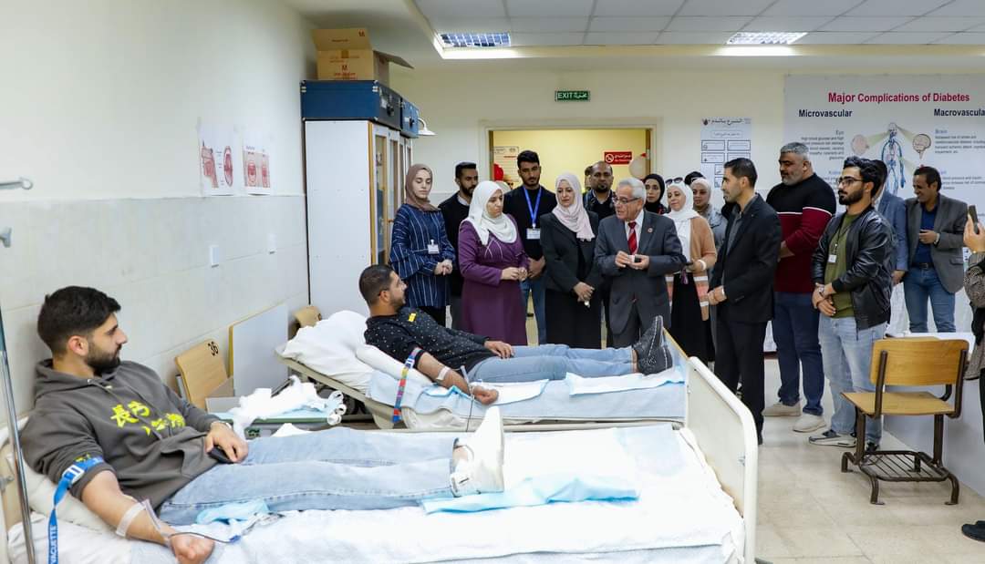 من جانبه، أشار الدكتور باسل المشاقبة إلى دور عمادة شؤون الطلبة في دعم العمل الطلابي التطوعي بكافة أشكاله واطلاق المبادرات الطلابية المساندة لصمود أهلنا في غزة والضفة الغربية مبينًا أن حملتنا اليوم تستهدف غرس الأمل وترسيخ قيم العطاء وتجسيد التضامن الإنساني مع الأشقاء الذين يواجهون أعتى قوة عدوانية همجية لأن كل قطرة دم تقدم لهم تحمل في طياتها رسالة حياة، وأمل وتكافل لمن هم في أمسّ الحاجة إليها. وأضاف أن الجامعة اطلقت يوم أمس حملة لجمع التبرعات بالتعاون مع الهيئة الخيرية الأردنية الهاشمية وهي مستمرة في هذا اليوم ايضا وتتعاون مع هذه الحملة.
