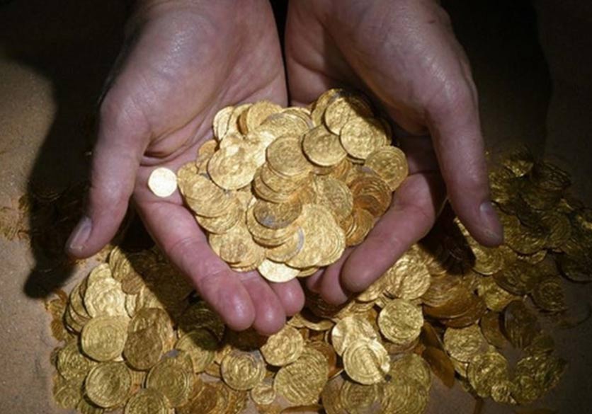 وجد الرجل صندوقا معدنيا صدئا، وعندما تمكن من فتحه، وجد حوالي 66 رطلاً (30 كيلوغراما) من العملات الذهبية بالداخل.