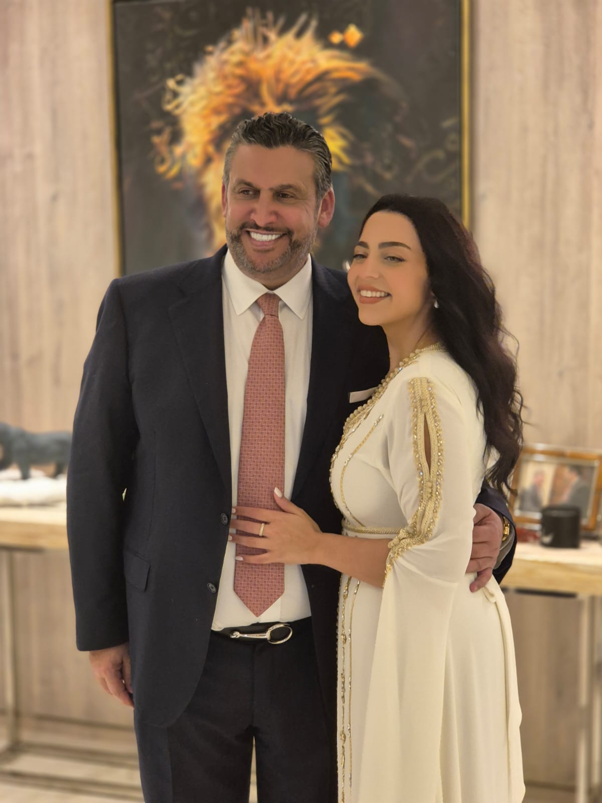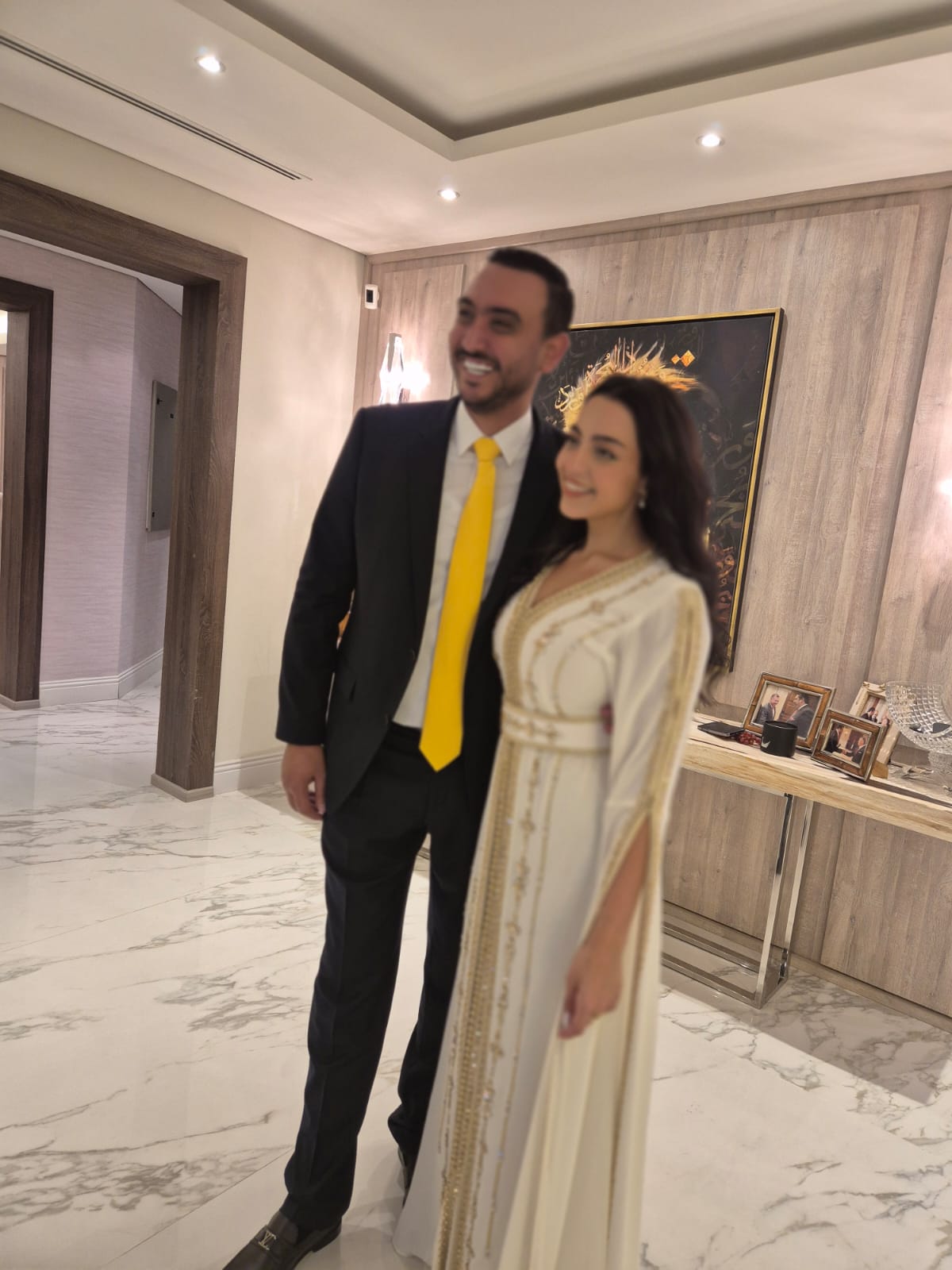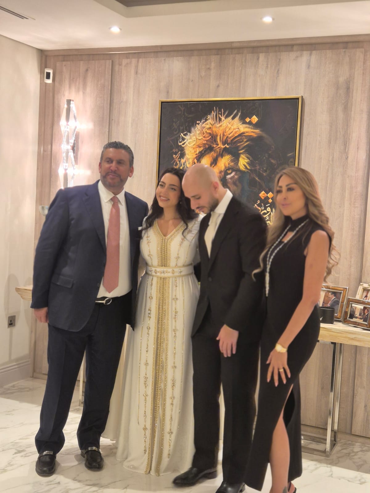 واحتفلت عائلتا العروسين بهذه المناسبة في منزل المهندس المفلح في دبي.
