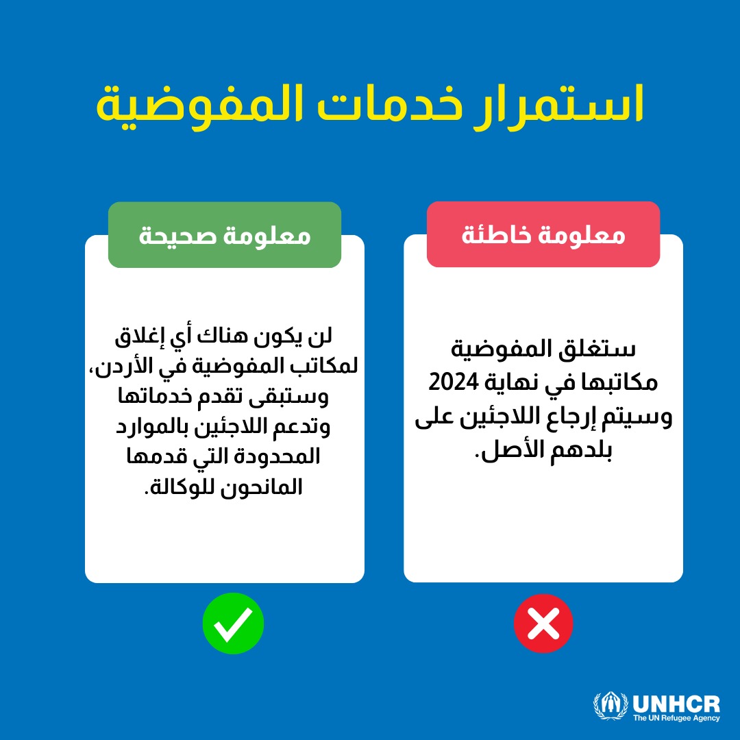 ودعت مفوضية اللاجئين إلى عدم الالتفات إلى المعلومات الخاطئة المتعلقة بإغلاق مكاتبها في الأردن، مشددة على أنها مجرد إشاعات.