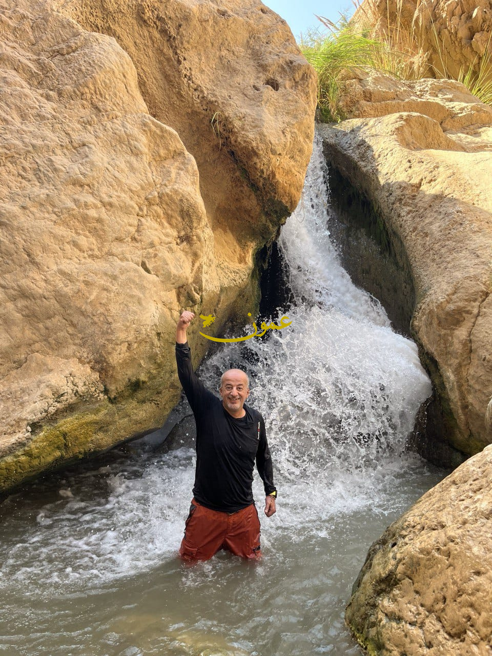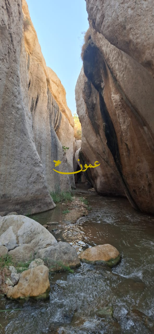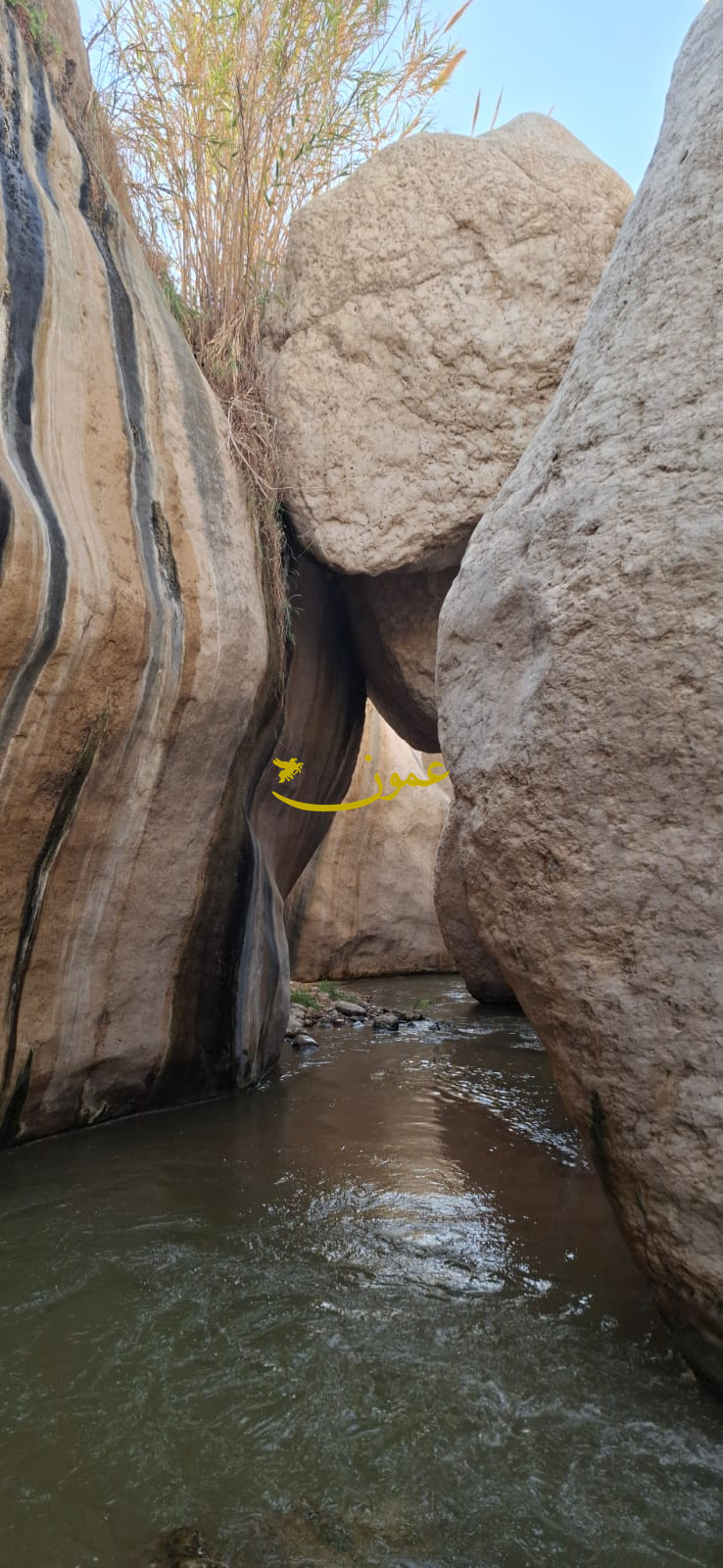 ومع مجرى الماء الدافئ كان مسارنا كاملا بوادي عفرا، احتجنا لاستخدام عصي الإرتكاز لمعرفة عمق الخطوات وأين عليك أن تضع قدمك بالماء الذي يميل إلى الحمرة لتشبعه بما يحمله من خام الحديد الهاميتايت "وكأنما دم الذبيح الجذامي ما زال ينزف لهذا اليوم" ، وخشية الإنزلاق بما نبت من طحالب على صخور المكان الملساء، فركيزتك ويد العون وحذائك ذو النعل المقاوم للإنزلاق وأفضلها ما حمل الإشارة الصفراء "فيبرام" سبيلك لإتمام المسار بسلام دون إصابة مع الإنصياع لتعليمات دليلنا حسام القرعان الحاذق وابن المكان العارف لتفاصيله وخباياه والعامل في دلالة سياحة المغامرة ، وهو بالفعل ما حدث لأحد أفراد الفريق بسبب اختياره الخاطئ لحذاء تفسخ بأثر الماء وتضاريس المكان ،فما كان منه إلا أن أخرجه عبر طريق أوصله إلى بر الأمان بيسر وسهولة.