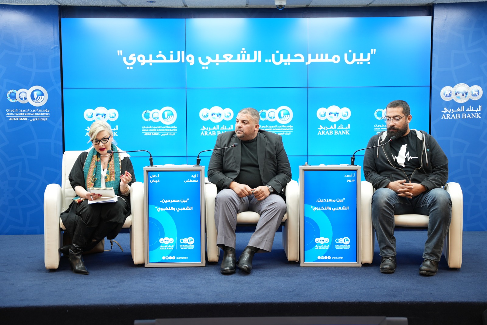 وشارك في الحوارية التي جاءت بعنوان " بين مسرحين.. الشعبي والنخبوي" الممثل والمخرج المسرحي زيد مصطفى، والممثل والمخرج المسرحي أحمد سرور، فيما قدمتهم وأدارت الحوار مع الجمهور المخرجة دلال فياض.