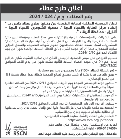 عطاء صادر عن الجمعية الملكية لحماية الطبيعة
