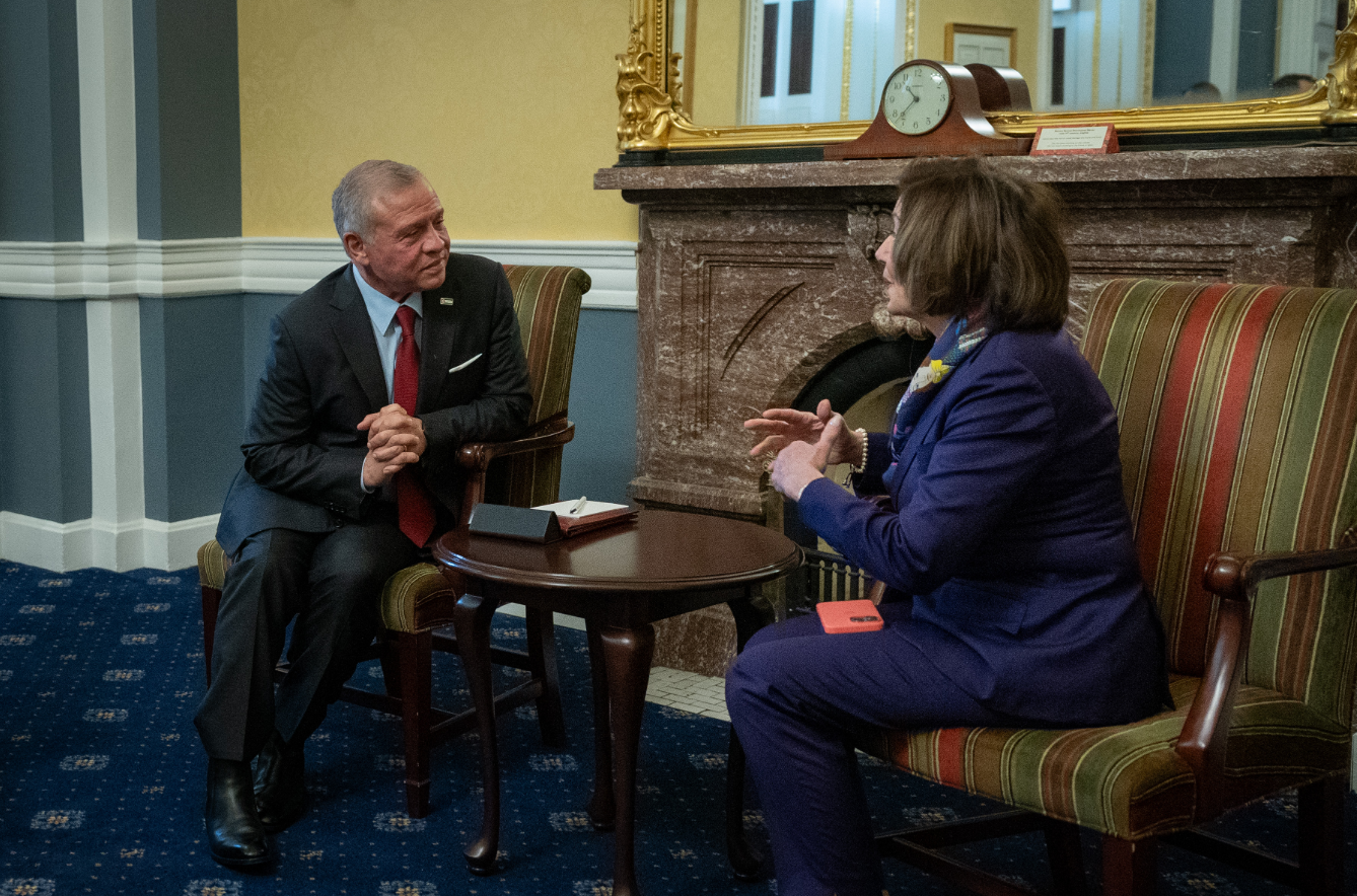 عمون - التقى جلالة الملك عبدالله الثاني رئيسة مجلس النواب الأمريكي السابقة نانسي بيلوسي في واشنطن.