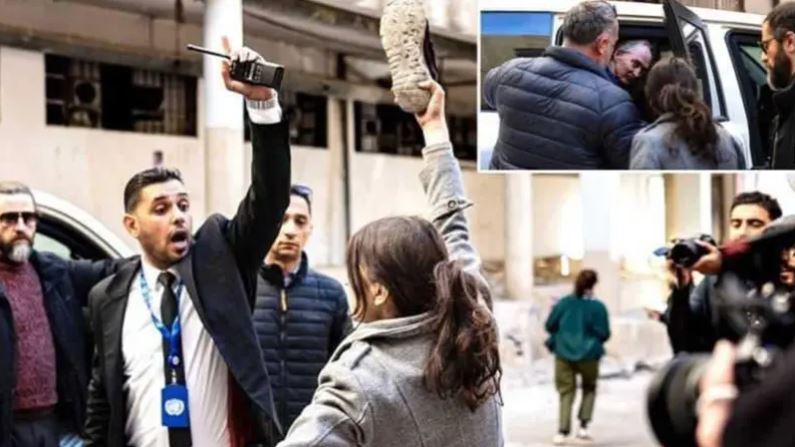 عمون - رفعت فتاة سورية الحذاء بوجه المبعوث الأممي الخاص إلى سوريا غير بيدرسون أثناء زيارته الأولى لدمشق بعد سقوط نظام بشار الأسد، الأسبوع الماضي.