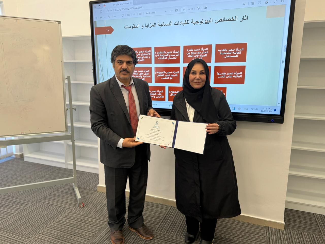 وتناولت المحاضرة تحليلًا علميًا لدور المهارات البيولوجية لدى النساء الأردنيات في تعزيز قدراتهن القيادية، مسلطةً الضوء على أهمية هذه المهارات في صياغة نهج قيادي مبتكر يعكس احتياجات ومتطلبات البيئة المحلية. كما اكدت الدكتورة السليم على اهمية النتائج التي خلصت إليها الدراسة بوجود علاقة طردية متوسطة بين تفعيل المهارات البيولوجية واعداد وتطوير القيادات النسائية، حيث يفسر تفعيل هذه المهارات 57% من التغير الحاصل في اعداد وتطوير القيادات والنسبة المتبقية 43% تعود لعوامل اخرى .