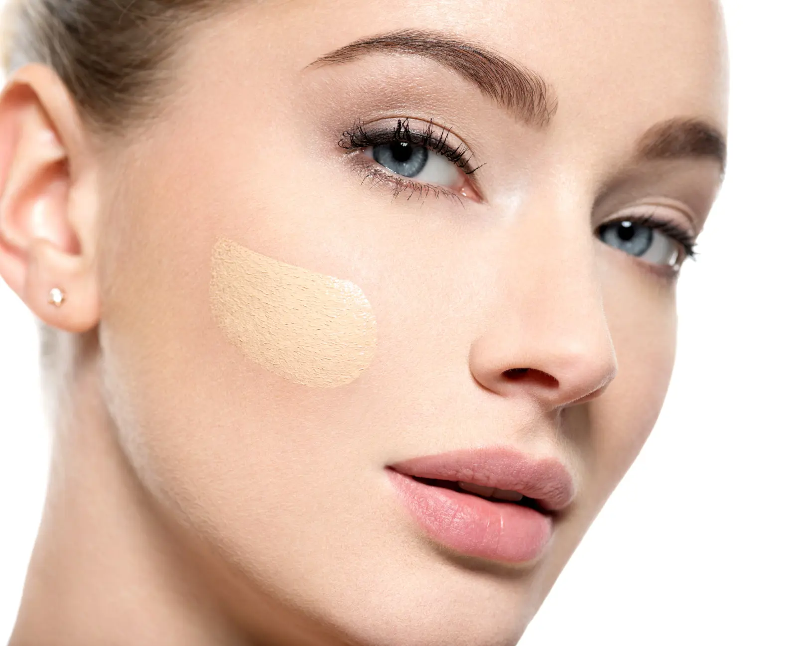 باستخدام أطراف أصابعك، ضعي نقاطاً صغيرة من الكريم على وجهك، وركزي على المناطق التي تحتاج إلى تغطية إضافية أو تصحيح لون، مثل الهالات السوداء أو البثور.