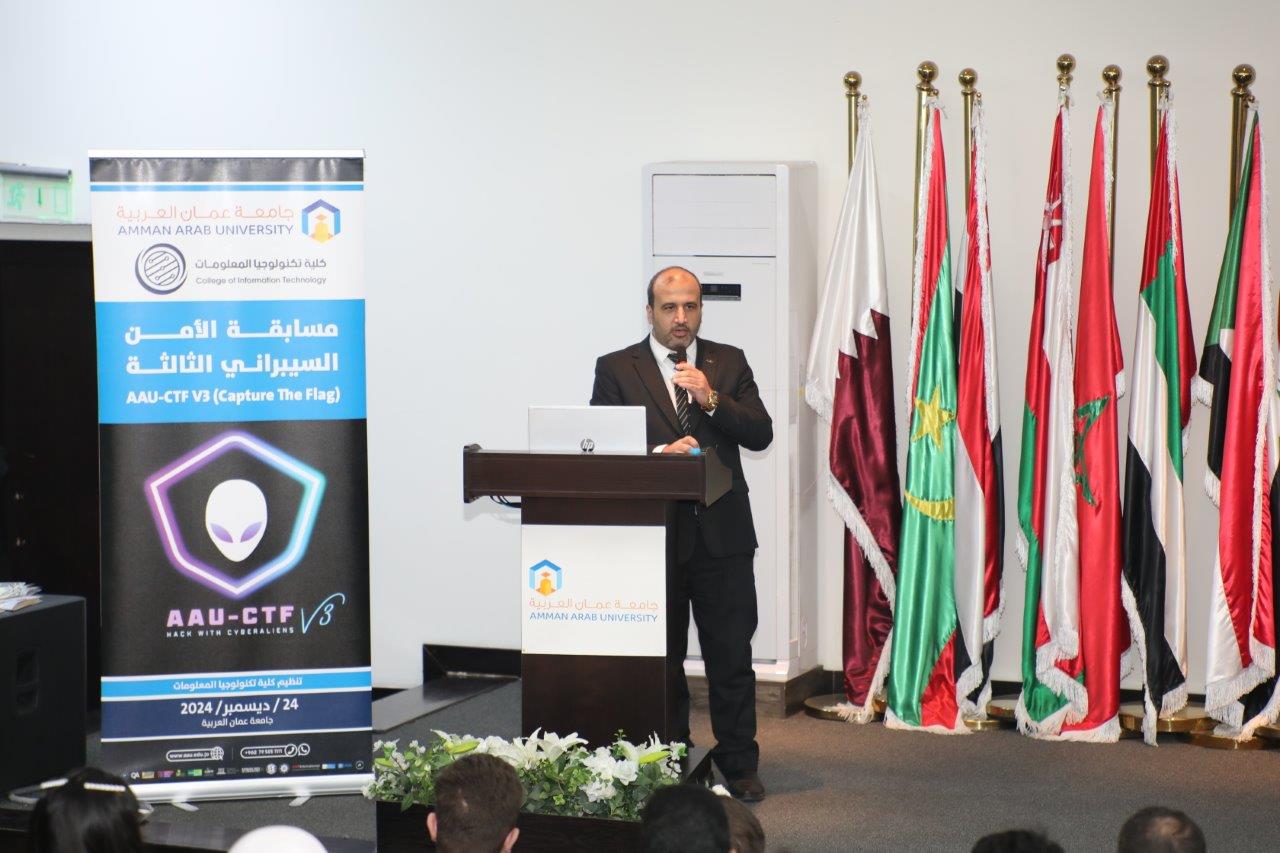 بدوره أكد الدكتور حسام الحمد عميد كلية تكنولوجيا المعلومات في جامعة عمان العربية على أهمية مثل هذه المسابقات في صقل مهارات الطلبة وتعزيز قدراتهم العملية مما يسهم في تأهيلهم لسوق العمل، كما أعرب عن شكره للشركاء في هذه المسابقة وهم شركة CyberAliens التي قامت بتطوير منصة خاصة لحل الأسئلة في كل من المرحلة التأهيلية والمرحلة النهائية، إضافة إلى تقديم شهادات الشكر والتقدير للشركة.