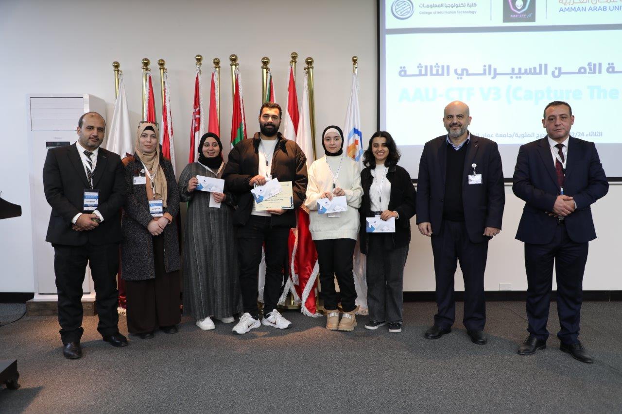 عمون - أقامت كلية تكنولوجيا المعلومات في جامعة عمان العربية مسابقة "Capture the Flag" بنسختها الثالثة AAU-CTFv3 بالتعاون مع شركة CyberAliens، والتي نُظمت على مرحلتين، حيث تمثلت المرحلة الأولى في التصفيات التأهيلية التي استمرت لمدة (36) ساعة، بمشاركة 58 فريقًا من 220 طالبًا وطالبة، حيث يتكون كل فريق من 4 أفراد. وفي المرحلة النهائية التي أُقيمت في حرم جامعة عمان العربية، حيث تأهل 28 فريقًا يتكونون من 100 طالب، ليتنافسوا في جولة الحسم النهائية.