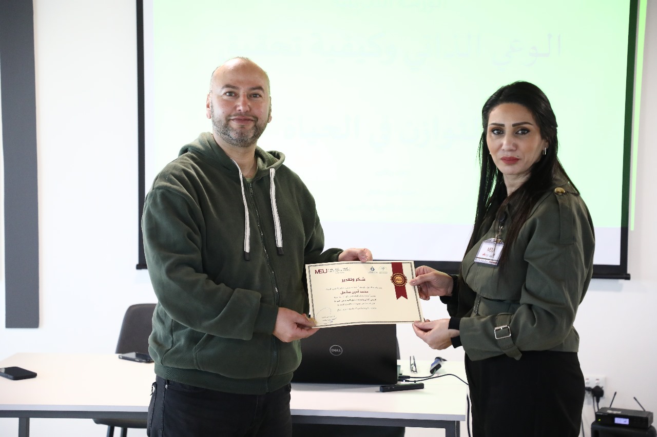 عمون – نظّم مكتب الإرشاد الوظيفي ومتابعة الخريجين في عمادة شؤون الطلبة بجامعة الشرق الأوسط دورة تدريبية مجانية بعنوان "الوعي الذاتي وكيفية تحقيق التوازن في الحياة".