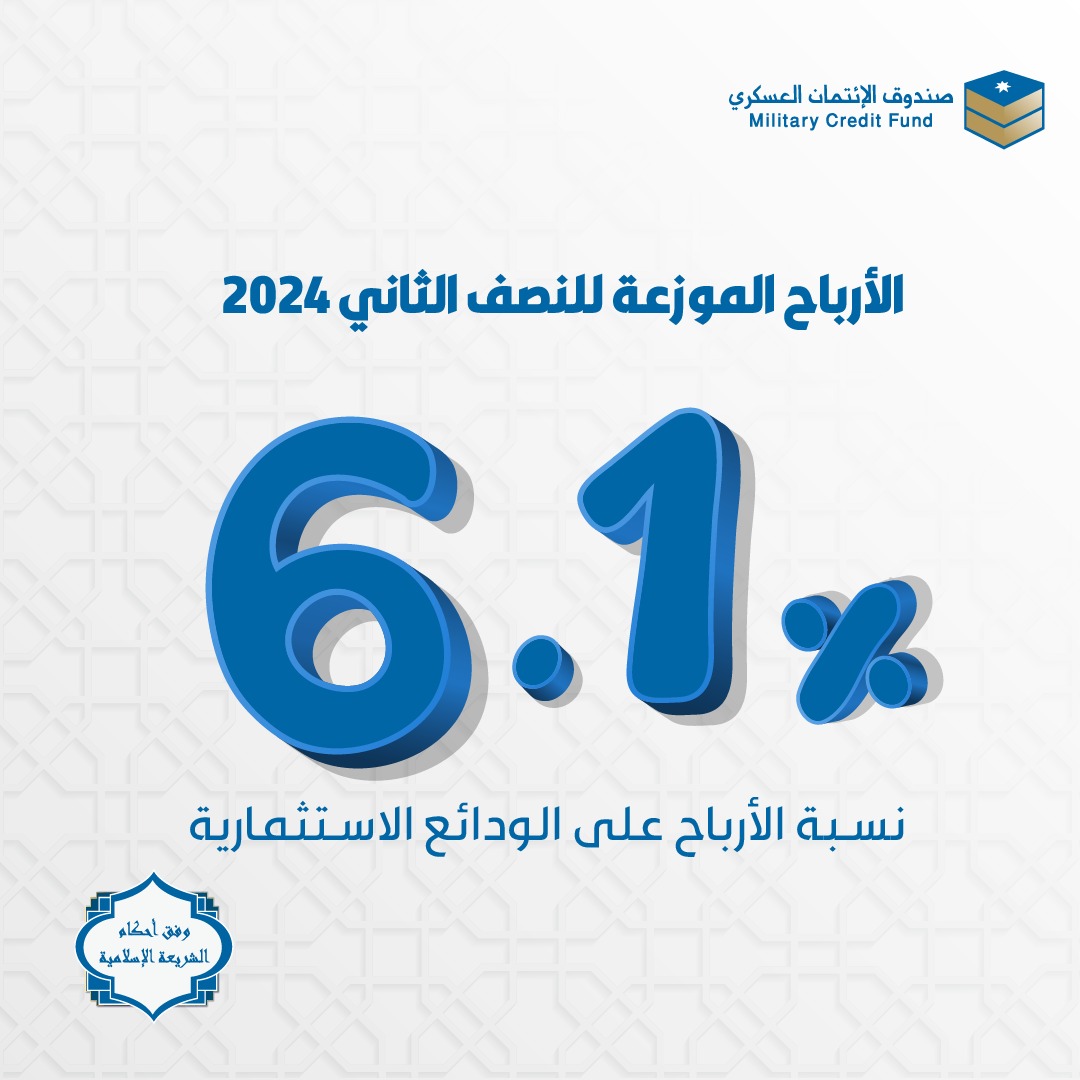 يشار إلى أن نسبة الأرباح المعلنة تنطبق على جميع الودائع الاستثمارية للضباط والأفراد والمتقاعدين العسكريين لدى الصندوق المودعة لمدة 12 شهر ومن الحد الأدنى 1000 دينار.