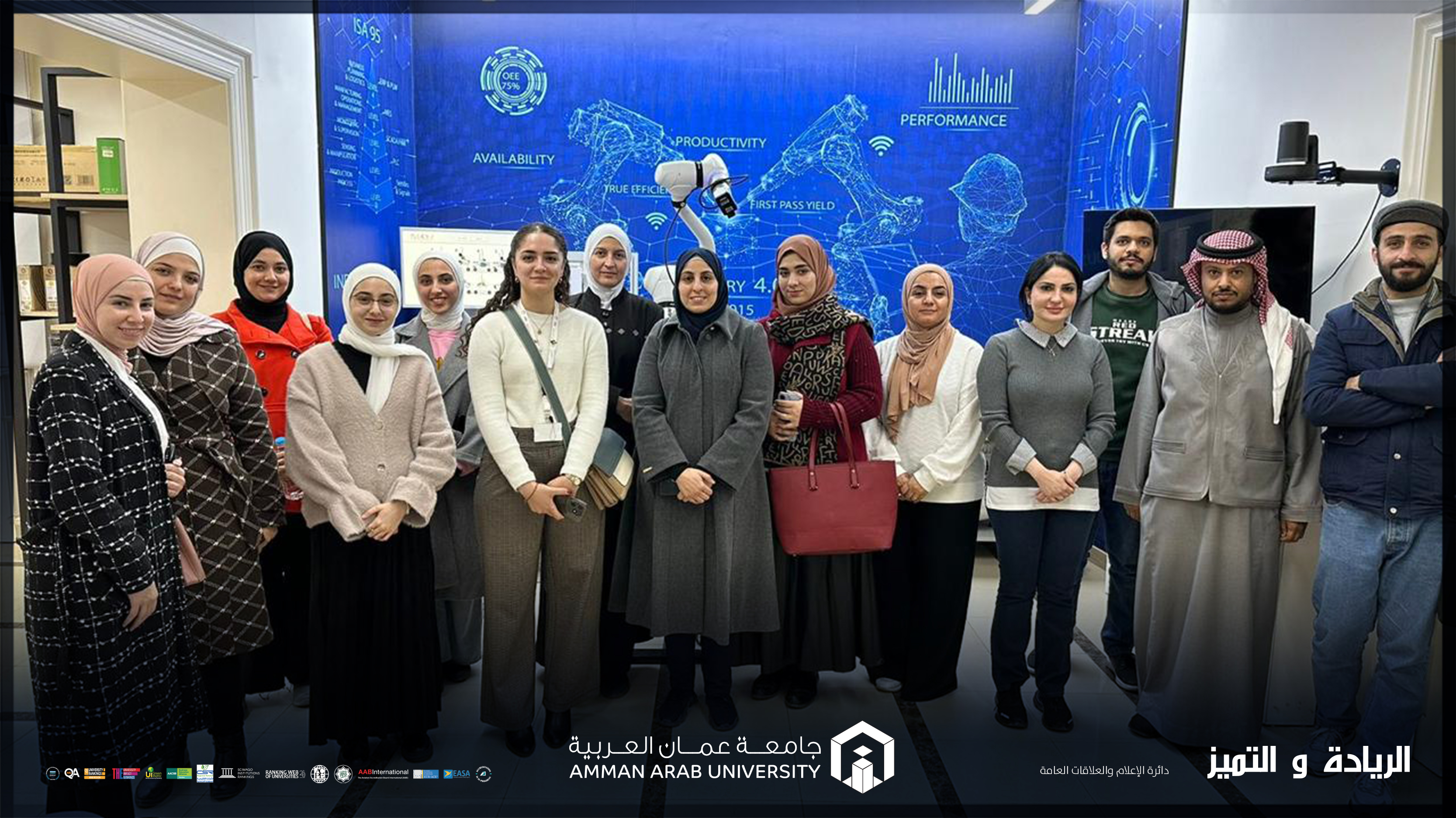 عمون - نظّمت كلية الصيدلة في جامعة عمان العربية زيارة ميدانية لطلبة برنامج الماجستير في تخصص "اليقظة الدوائية والشؤون التنظيمية" إلى مركز الابتكار الأردني للثورة الصناعية الرابعة(INJO4.0) أحد أبرز المؤسسات الوطنية المعنية بتعزيز الابتكار واستخدام التقنيات الحديثة في مختلف القطاعات الصناعية.
