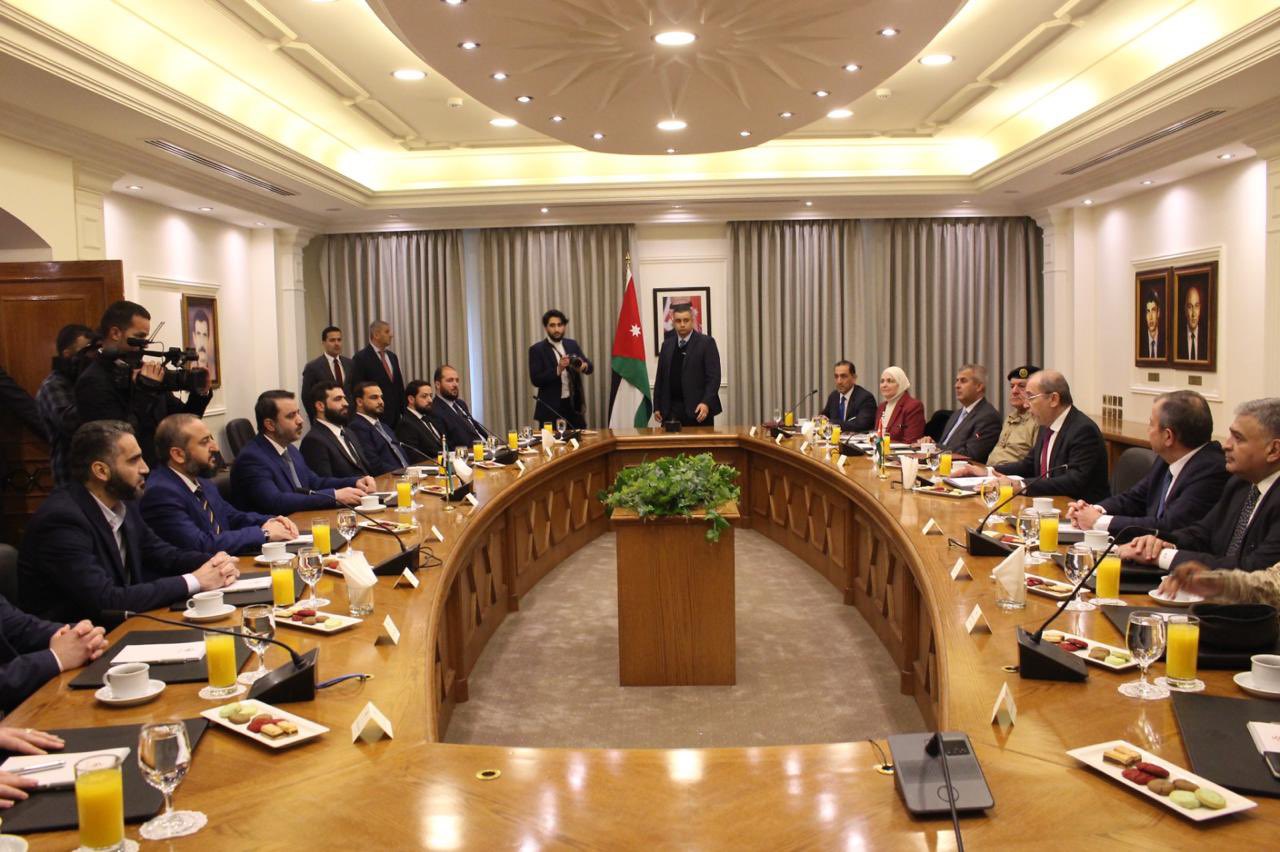 عمون - اجرى نائب رئيس الوزراء ووزير الخارجية وشؤون المغتربين أيمن الصفدي ورئيس هيئة الأركان المشتركة اللواء الركن يوسف الحنيطي ومدير المخابرات العامة اللواء أحمد حسني ووزير الطاقة والثروة المعدنية صالح الخرابشة، اليوم الثلاثاء، مباحثات مع وزير الخارجية والمغتربين السوري أسعد الشيباني والوفد السوري رفيع المستوى يضم كلا من ووزير الدفاع السوري مرهف أبو قصرة ورئيس جهاز الاستخبارات العامة أنس خطاب، ووزير النفط والثروة المعدنية غياث دياب، ووزير الكهرباء عمر شقروق، في مقر الوزارة. |
