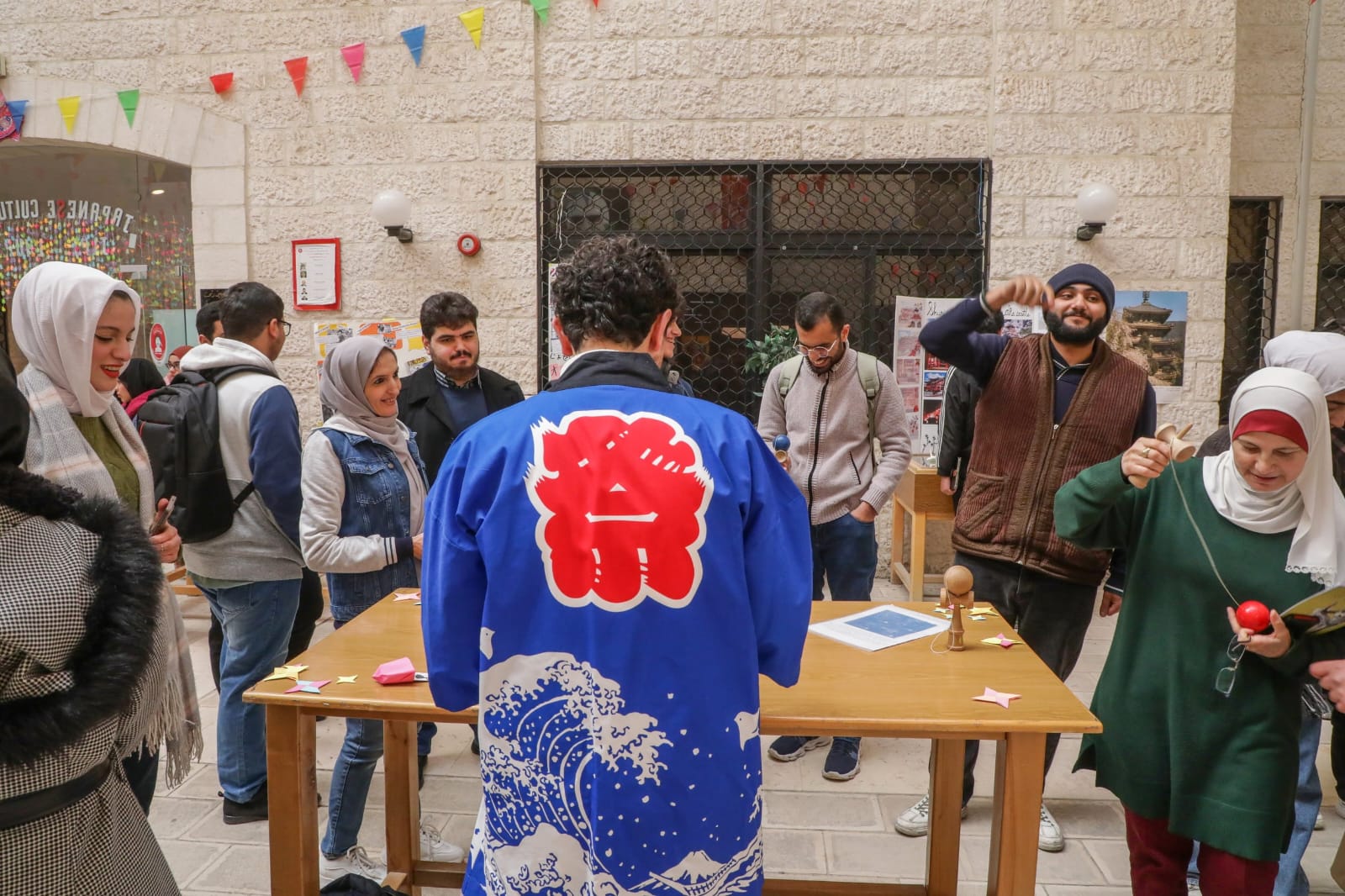 عمون - افتتح رئيس الجامعة الهاشمية الأستاذ الدكتور خالد الحياري فاعليات اليوم الثقافي للغة اليابانية، الذي نظمه مركز اللغات في الجامعة بالتعاون مع السفارة اليابانية وجمعية الصداقة اليابانية، لتعريف طلبة الجامعة بالثقافة والحضارة واللغة اليابانية، بحضور السفير الياباني في الأردن السيد أساري هيديكي، ونائب رئيس الجامعة الأستاذ الدكتور وصفي الروابدة، ومدير مركز اللغات الدكتور عماد الخوالدة، ومشرفة اليوم الثقافي/ مدرسة اللغة اليابانية في المركز حنان باش إمام، وعدد من أعضاء الهيئتين الاكاديمية والادارية وطلبة الجامعة.