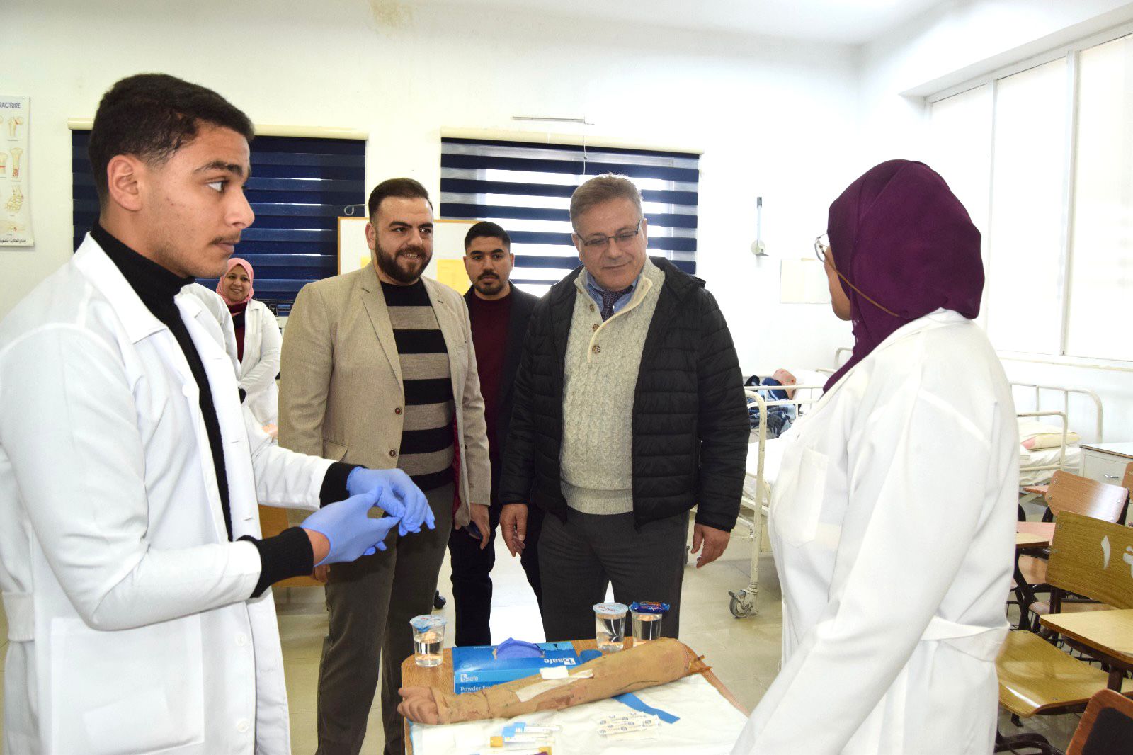 وتزامنًا مع سير الامتحان، قام الأستاذ الدكتور ماجد أبو زريق، رئيس الجامعة بالاطلاع على سير عمل الامتحان حيث أشاد خلال جولته بالجهود المبذولة من قبل عميد الكلية وأعضاء الهيئة التدريسية، مشددًا على أهمية العمل المتواصل لتحسين جودة التعليم الأكاديمي والتدريب العملي.