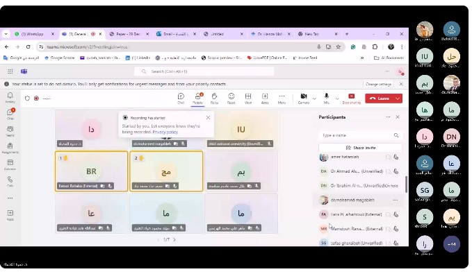 ورشة عَمل تَفاعلية بعنوان أسس إعداد رسائل الماجستير في جامعة إربد الأهلية عَبر منصة مايكروسوفت تيمز