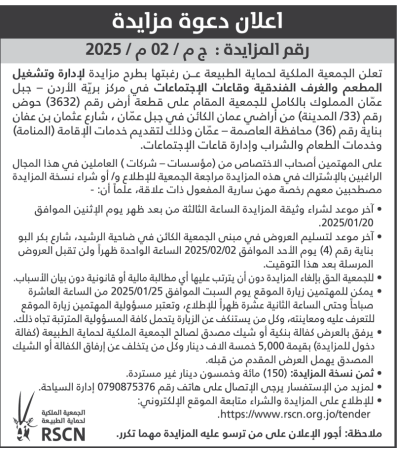 عطاء صادر عن الجمعية الملكية لحماية الطبيعة