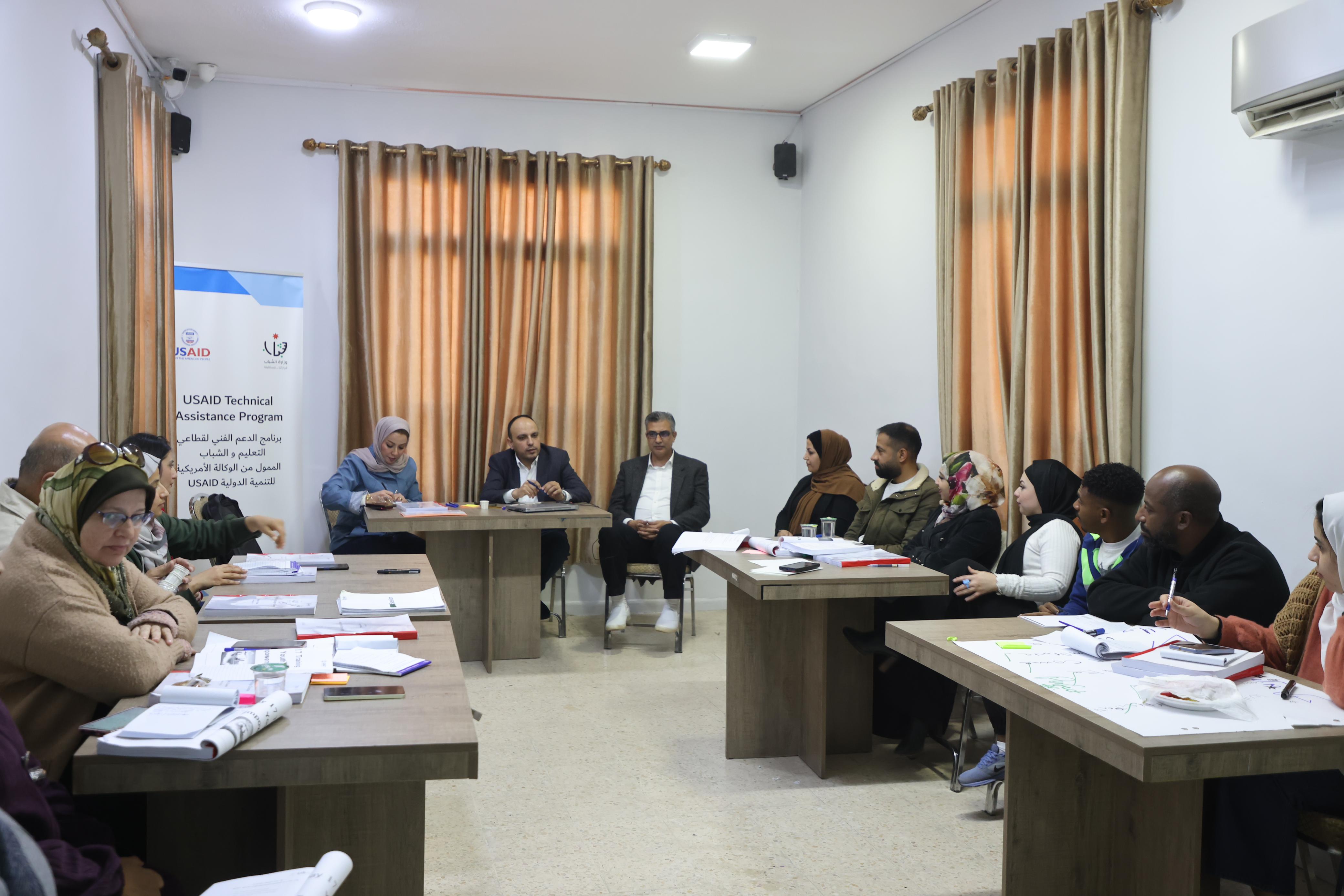عمون - تابع وزير الشباب المهندس يزن الشديفات، اليوم الإثنين في مركز شباب وشابات الزرقاء النموذجي جانبا من تدريبات برنامج بناء قدرات العاملين مع الشباب، الذي تنفذه وزارة الشباب ضمن خطة تفعيل المراكز الشبابية بمشاركة رؤساء ومشرفي المراكز الشبابية.