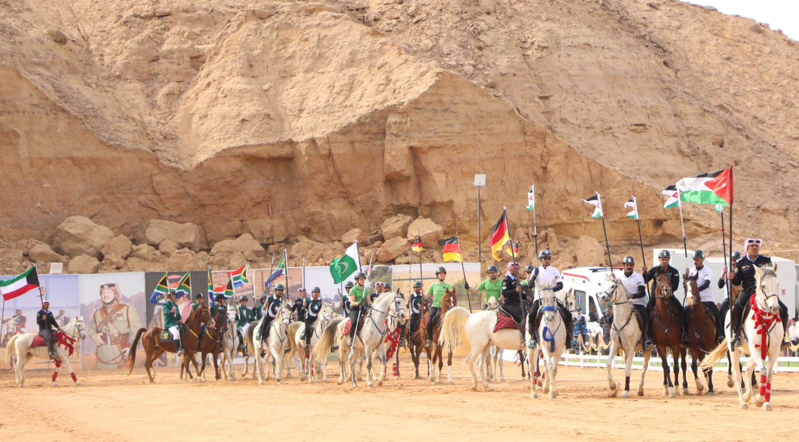 وتشتمل البطولة، التي تقام على مدار ثلاثة أيام، منافسات متنوعة للرمح والسيف والمعلقات، بمشاركة 35 فارسا من الأردن وألمانيا، والباكستان، والكويت، والعراق، ومصر، وجنوب إفريقيا.